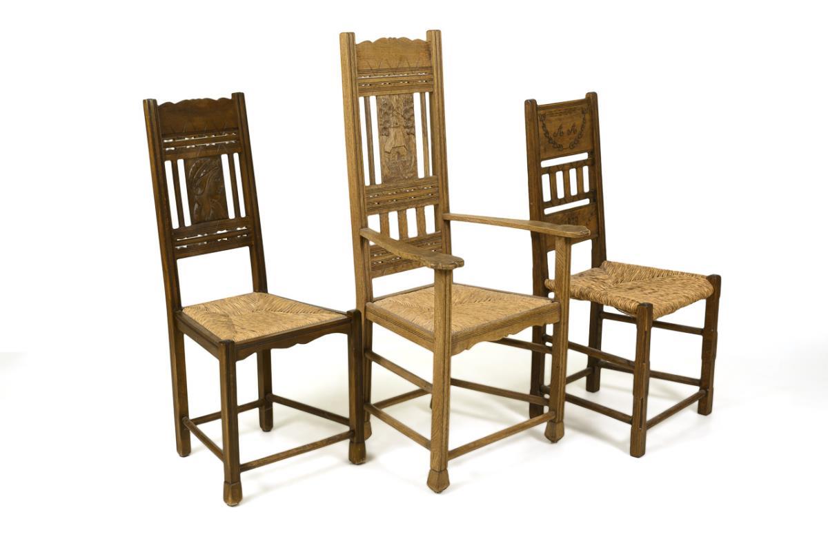 3 Worpsweder Jugendstil-Stühle. Worpsweder Werkstätten.