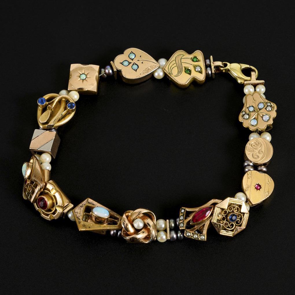Armband mit antiken Uhrenkettenschiebern.