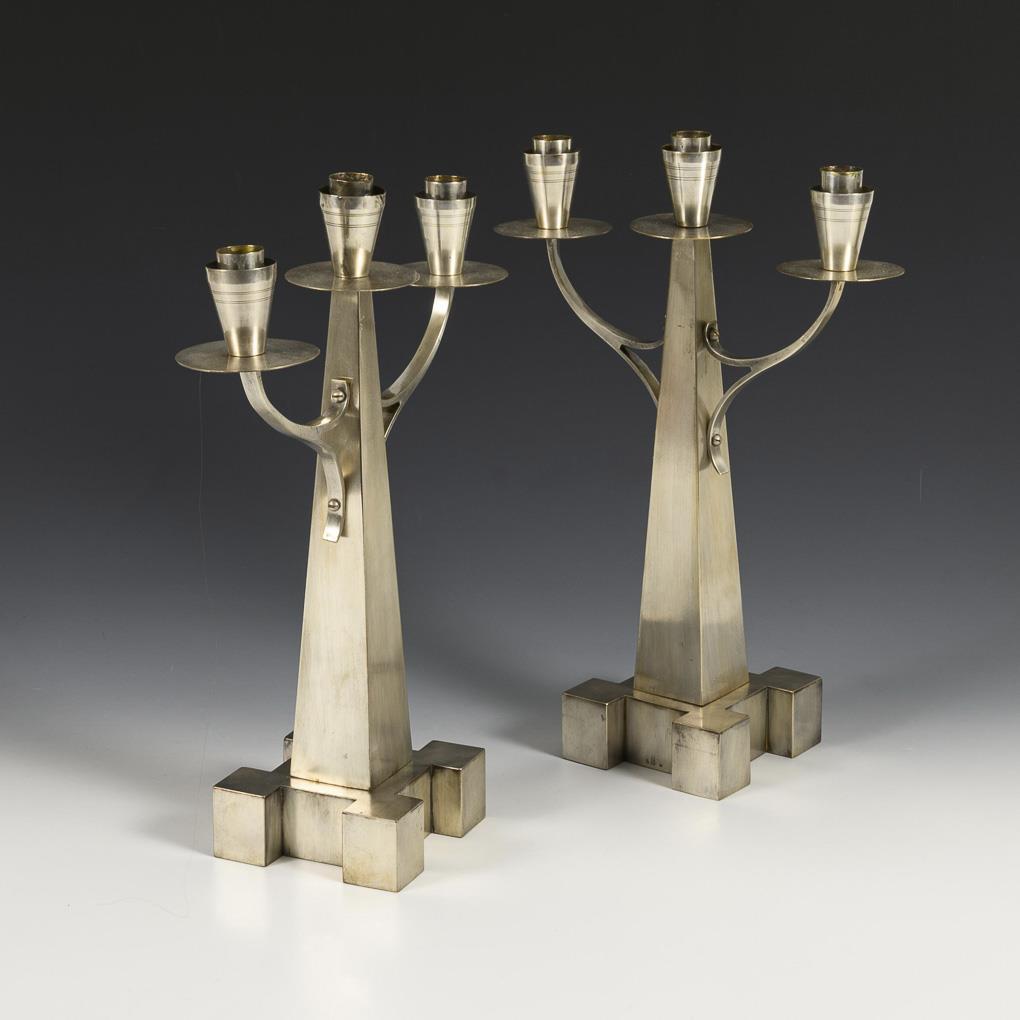 Paar versilberte Jugendstil-Leuchter | siehe Nachtrag. Würtembergische Metallwaren-Fabrik AG.