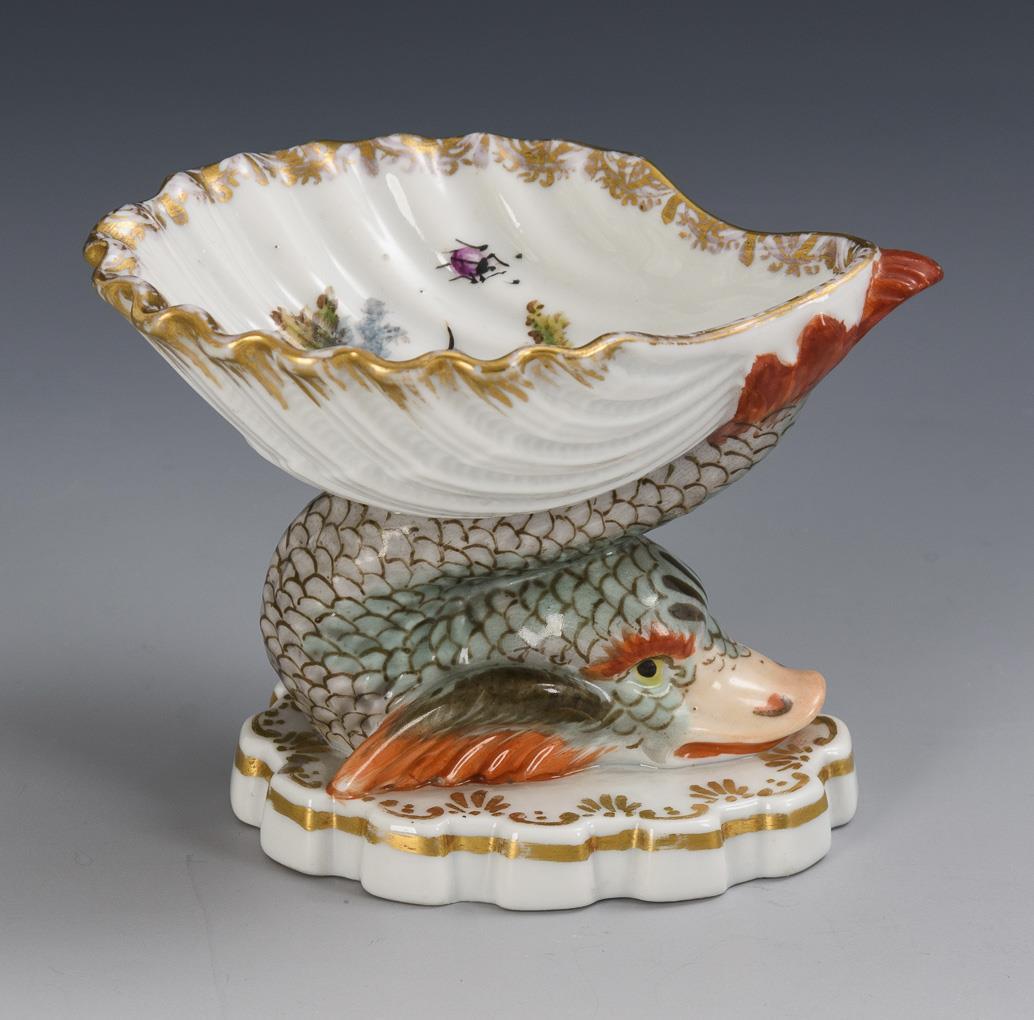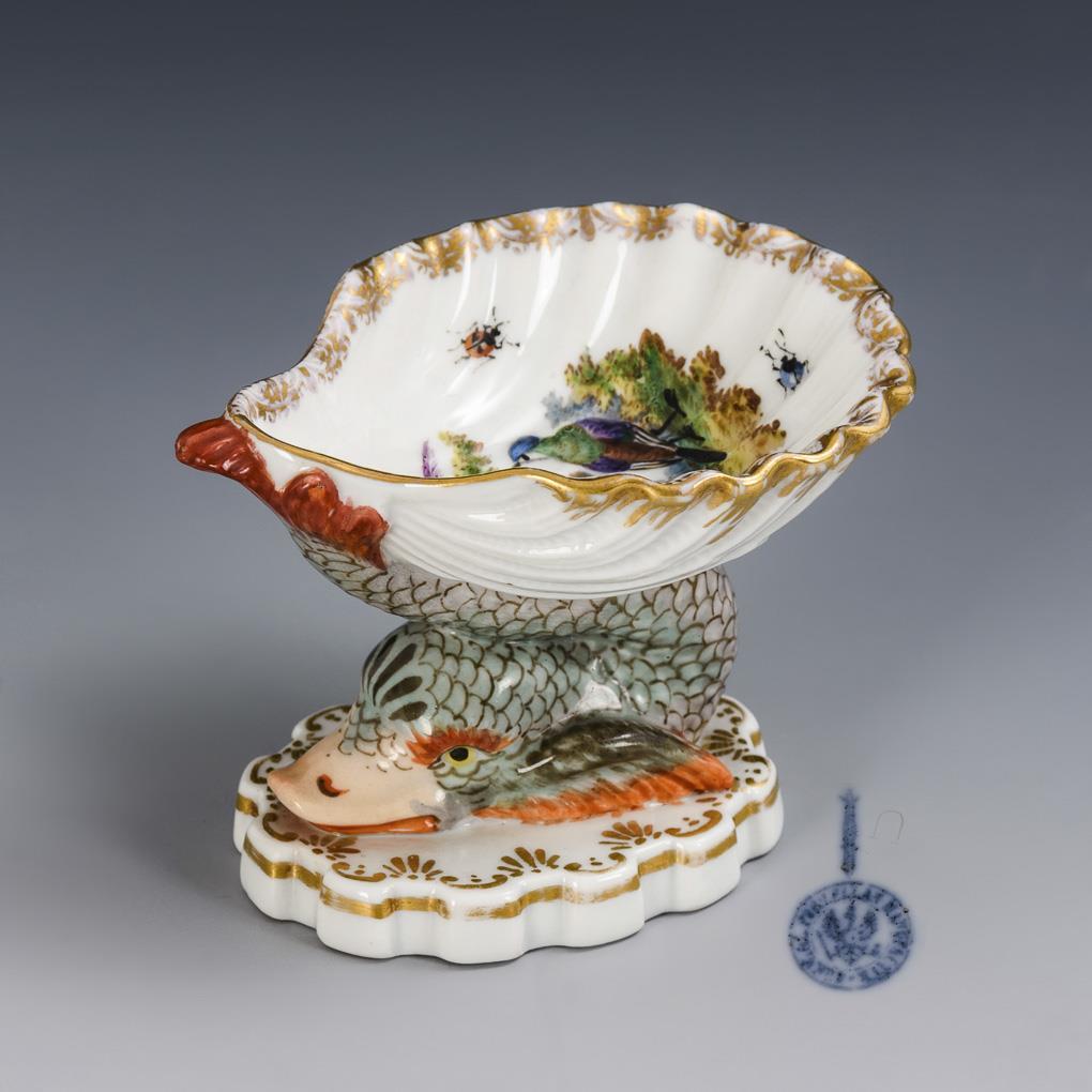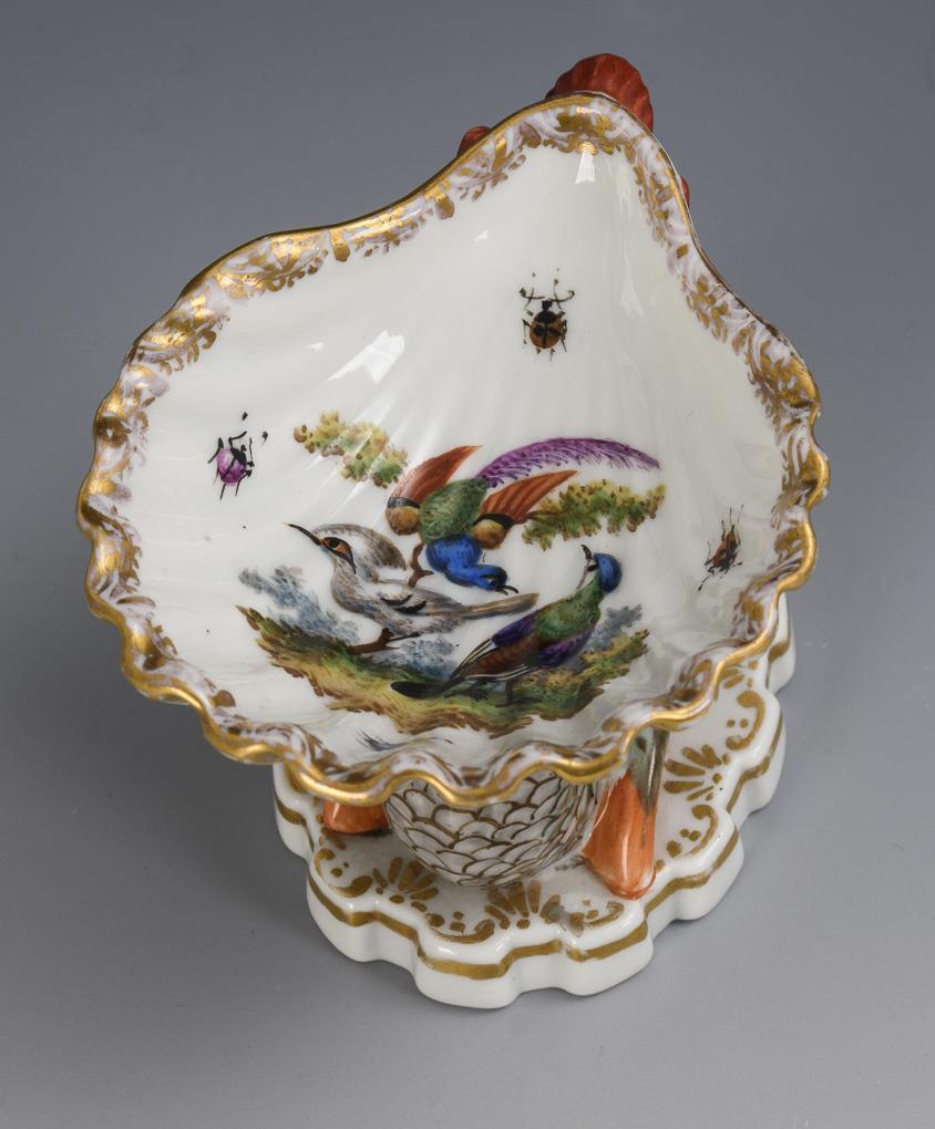 Saliere mit Delfinfuß und Vogelmalerei. KPM Berlin.