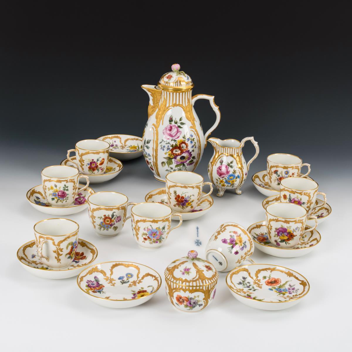 Kaffeeservice mit Blumenmalerei. KPM Berlin.