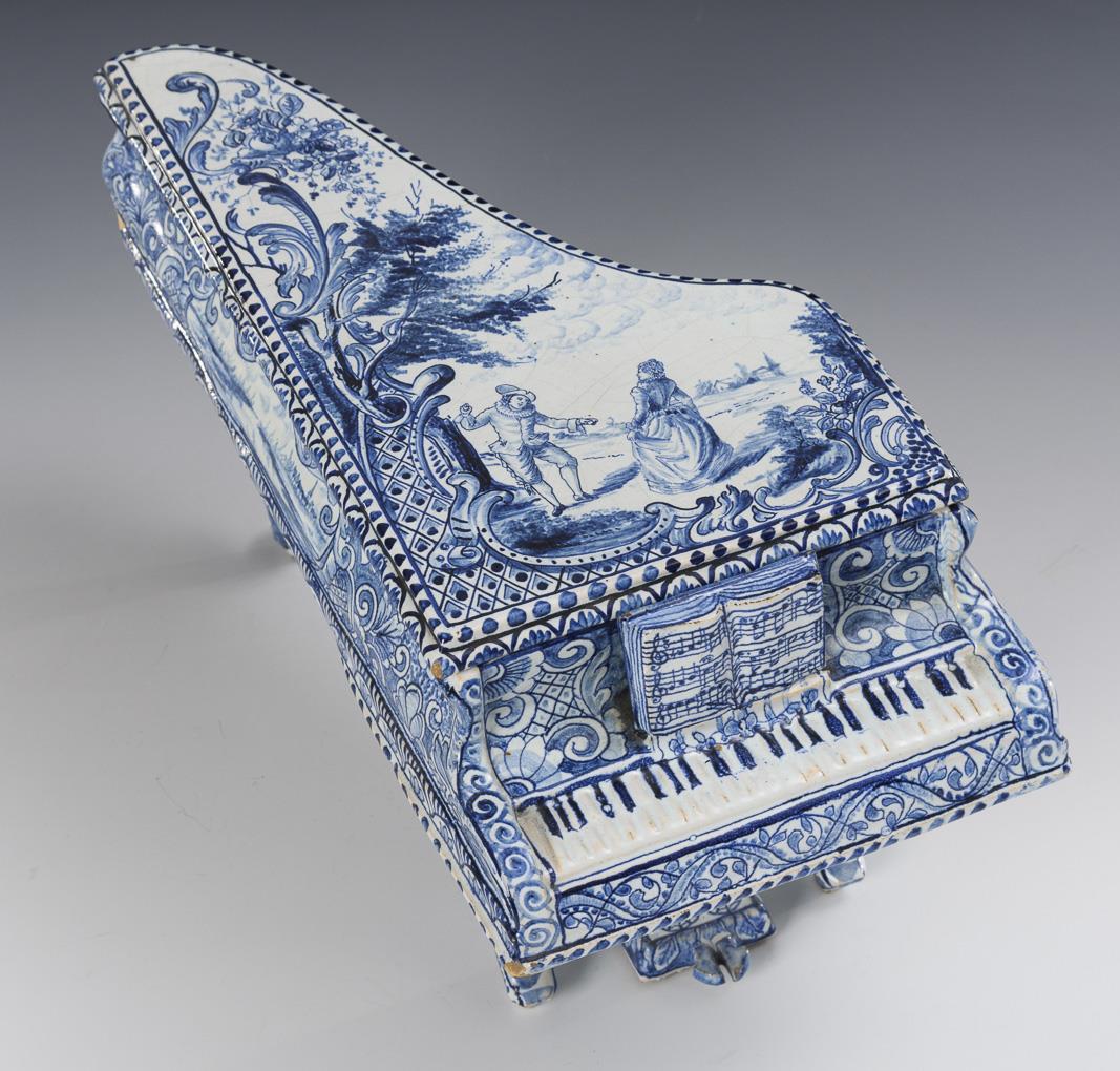 Seltene Fayence-Tischdekoration in Form eines Konzertflügels.