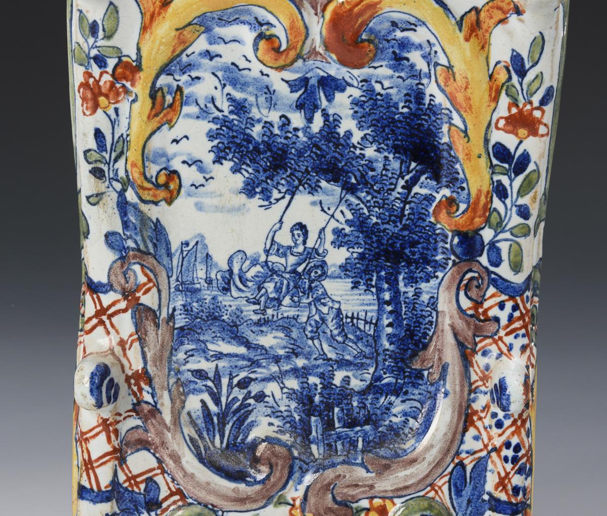 2 barocke Delfter Fayencen: Sänfte und Schuh.