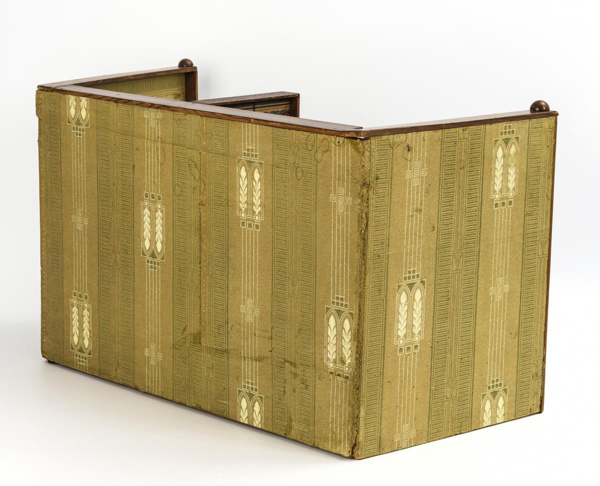 Holz, innen und außen nachtapeziert. 42 x 72 x 33 cm.