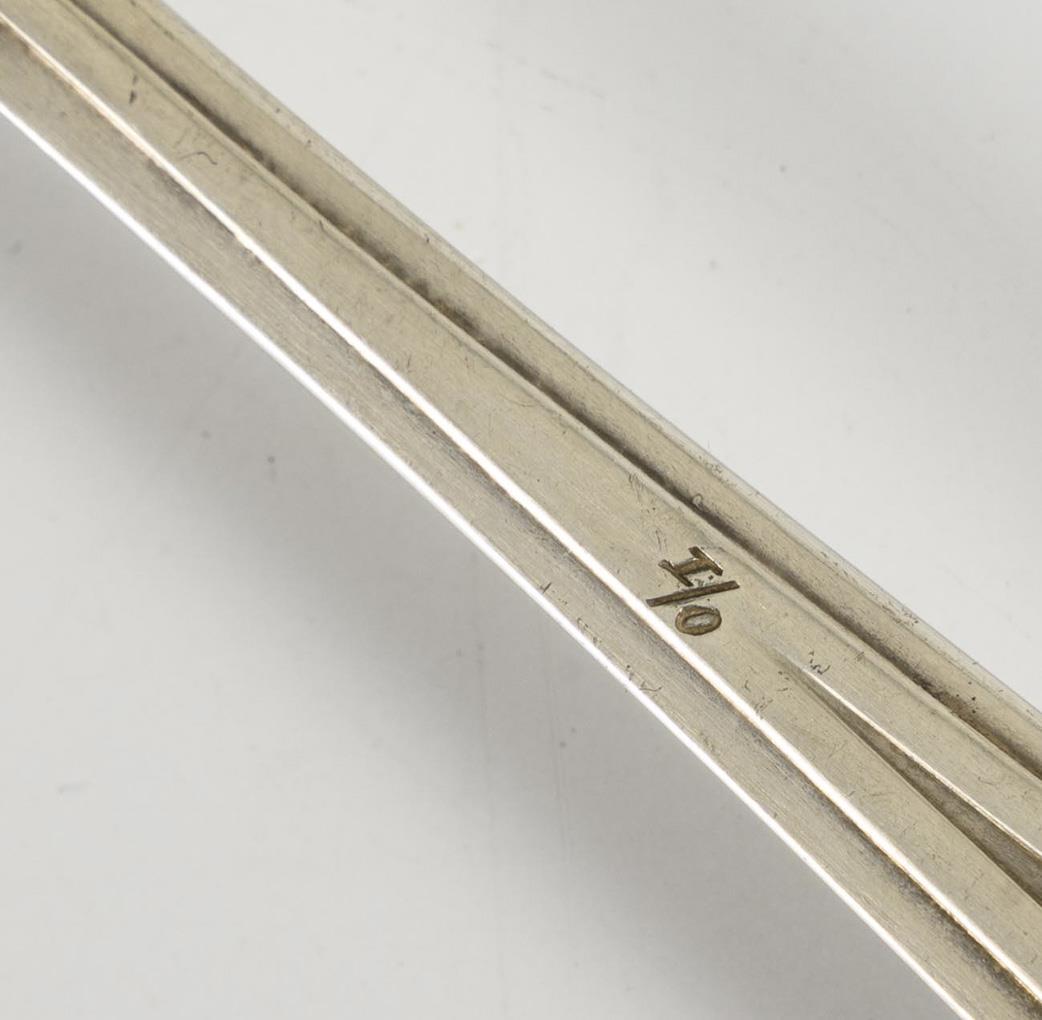 Metall, versilbert. L 25,5 und 29 cm.