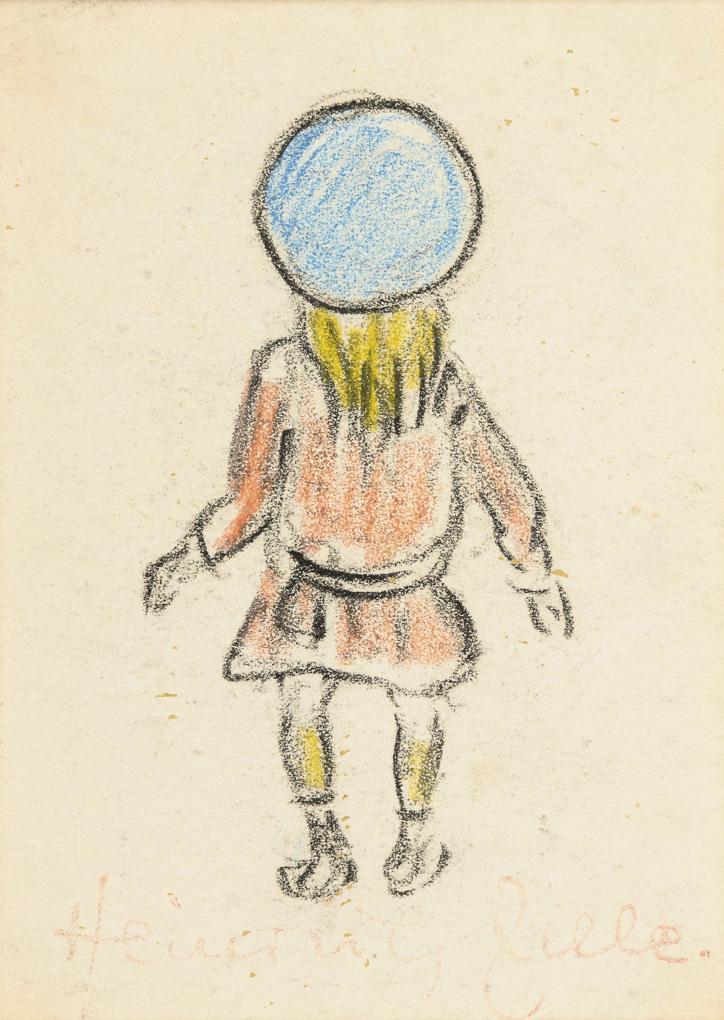 Farbstiftzeichnung. Stiftsignatur in Rot.