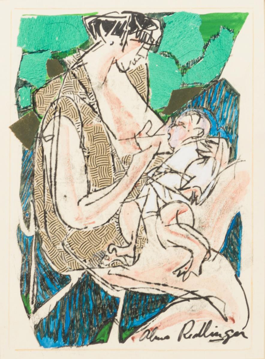 Expressiv ausgeführtes Porträt einer Mutter mit dem Baby.