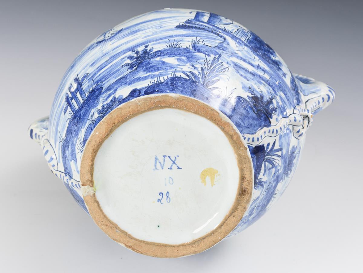 Weiß glasiert, Bemalung in Kobaltblau. H 35,5 cm.