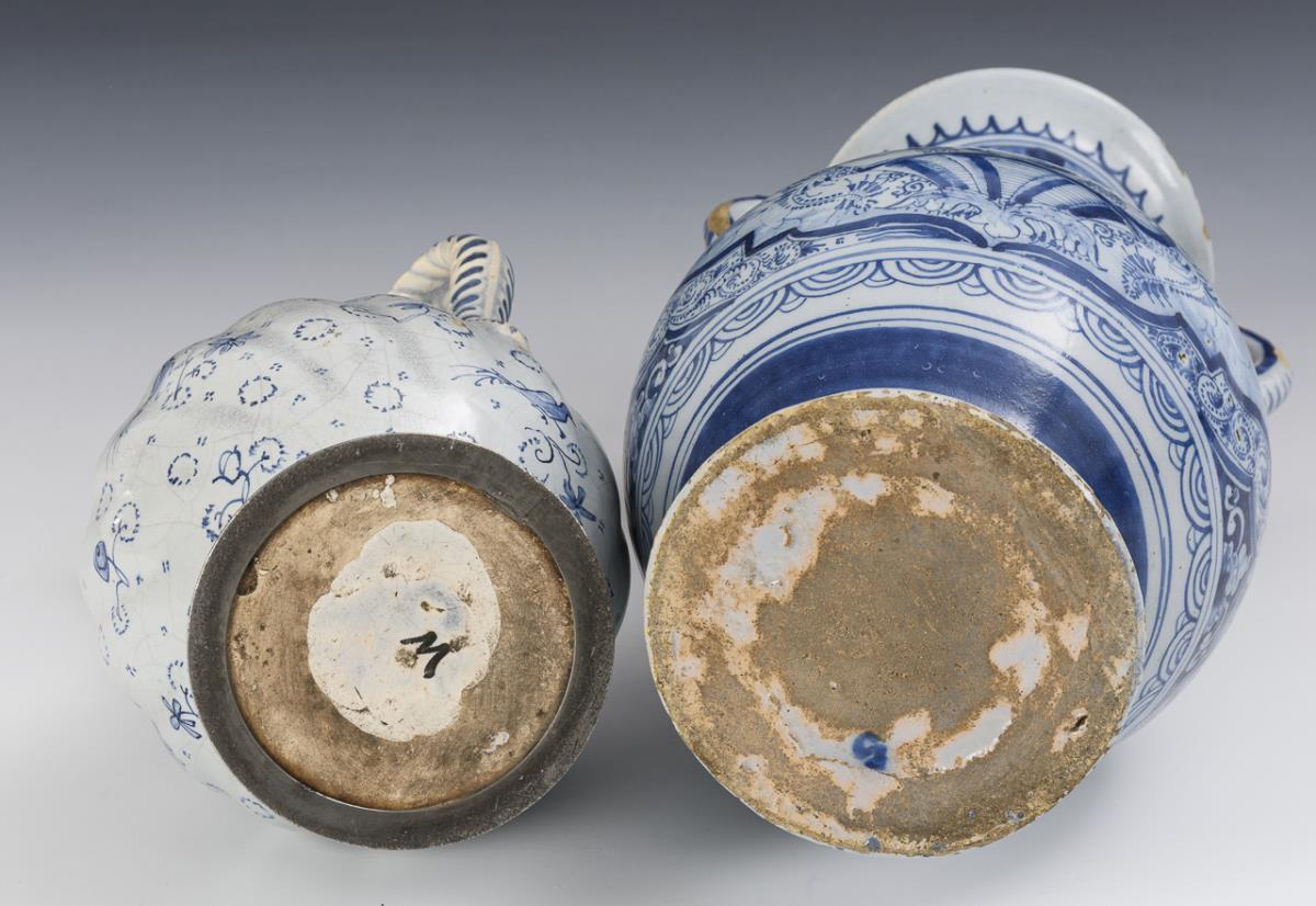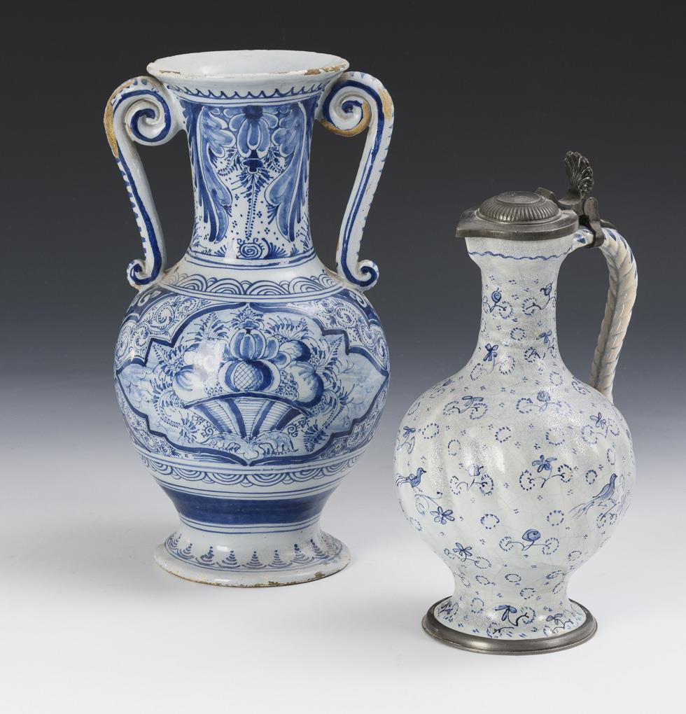 Barocke Fayence-Amphorenvase und Fayence-Enghalskrug.