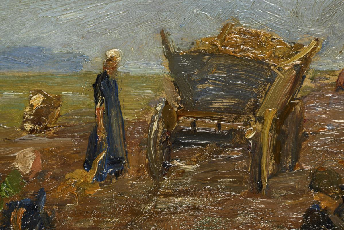 Undeutlich signiert: Erntelandschaft mit Bauern