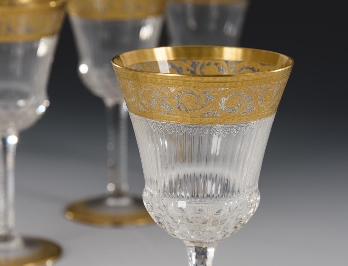 6 Sherrygläser "Thistle Gold". St. Louis.
