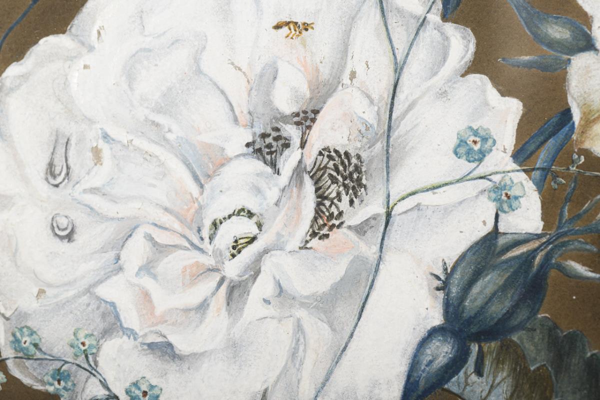 Ovales Biedermeier Rosenstillleben