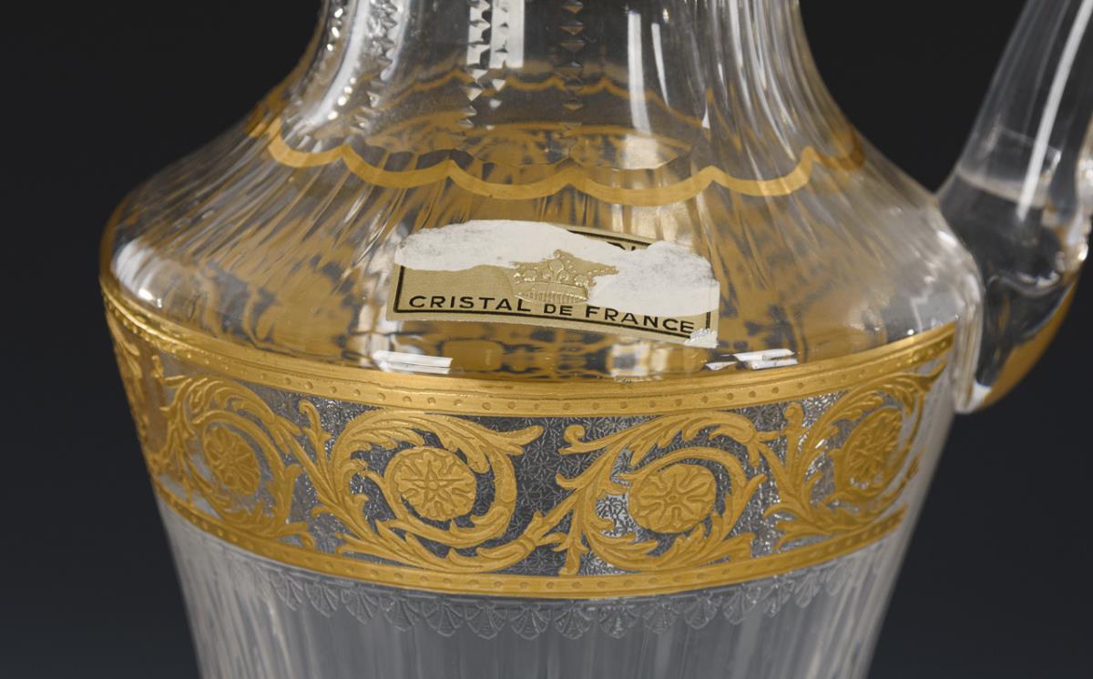 Farbloses Glas, Ätzbordüre. H 29 cm.