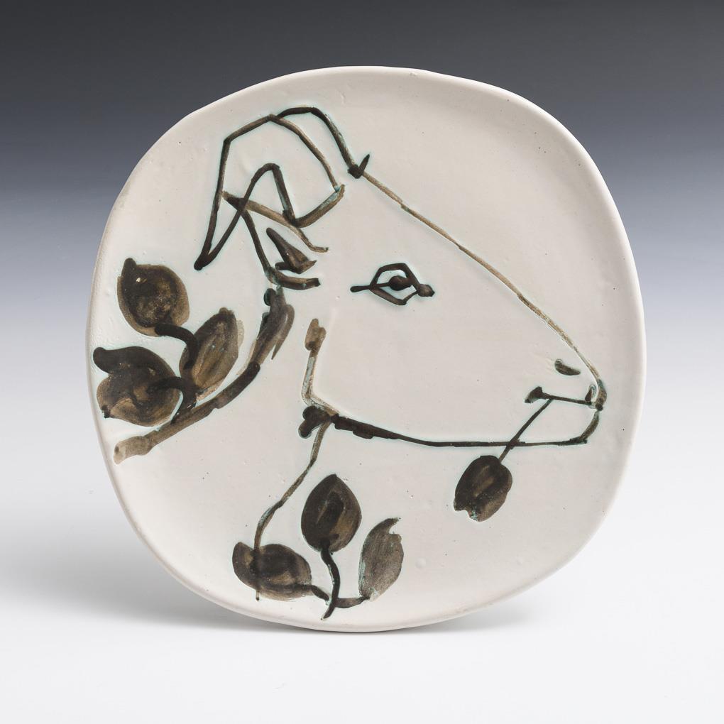 Seltener PICASSO-Teller "Tête de chèvre de profil" (Ziegenkopf im Profil) | siehe Nachtrag. Werkstatt Madoura (Georges und Suzanne Ramié), Vallauris/Frankreich.