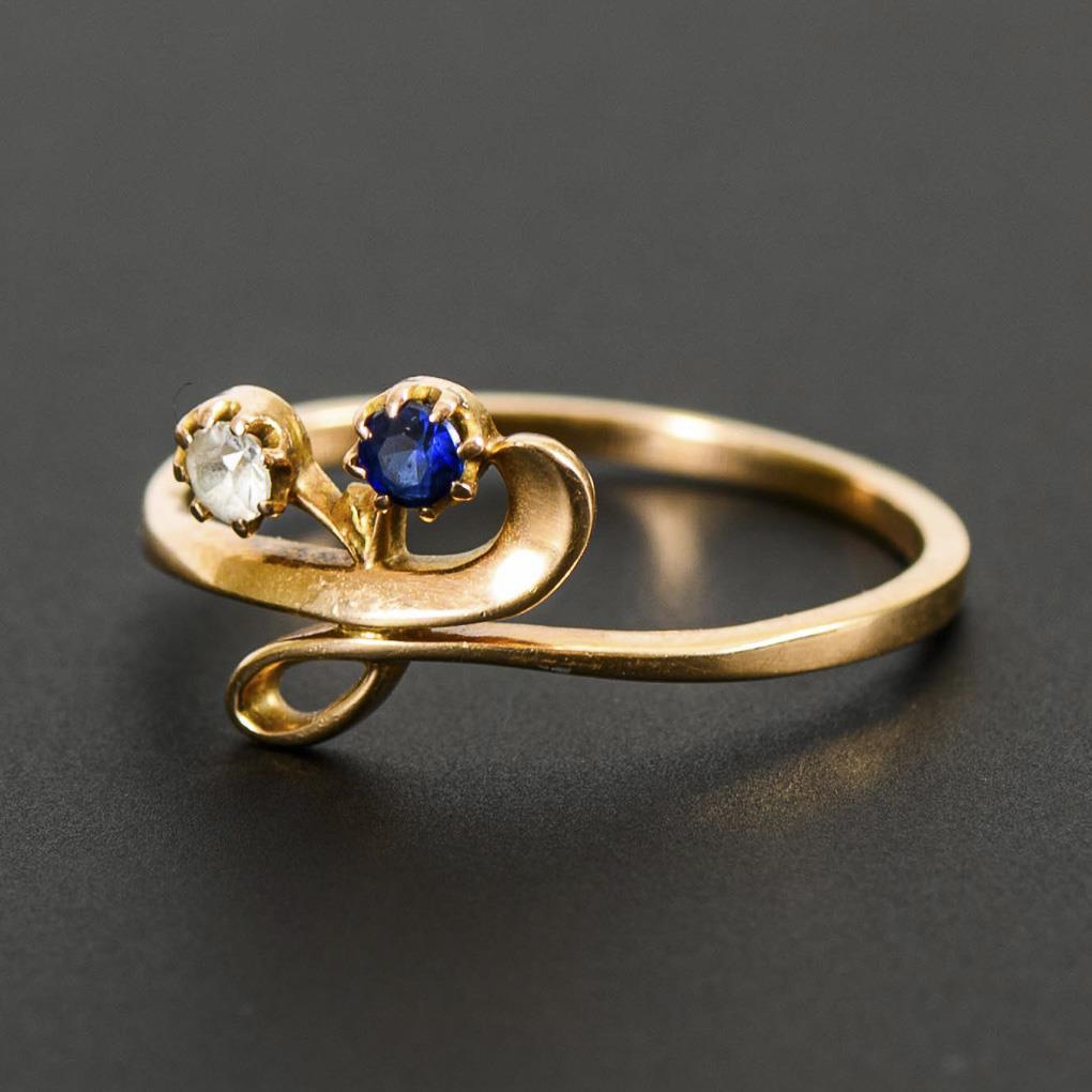 Ring mit Saphir und farblosem Stein.