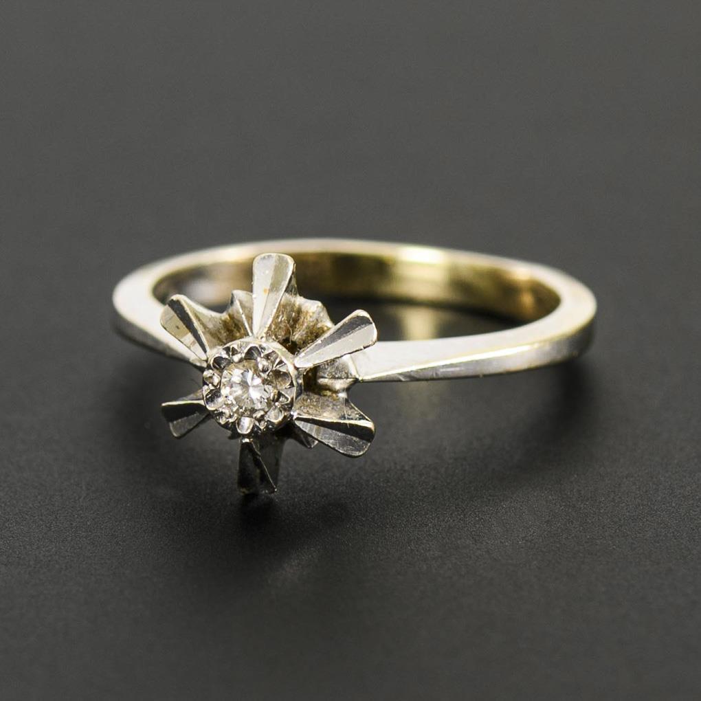 Chatongefasster, kleiner Brillant zwischen schmaler Schiene.