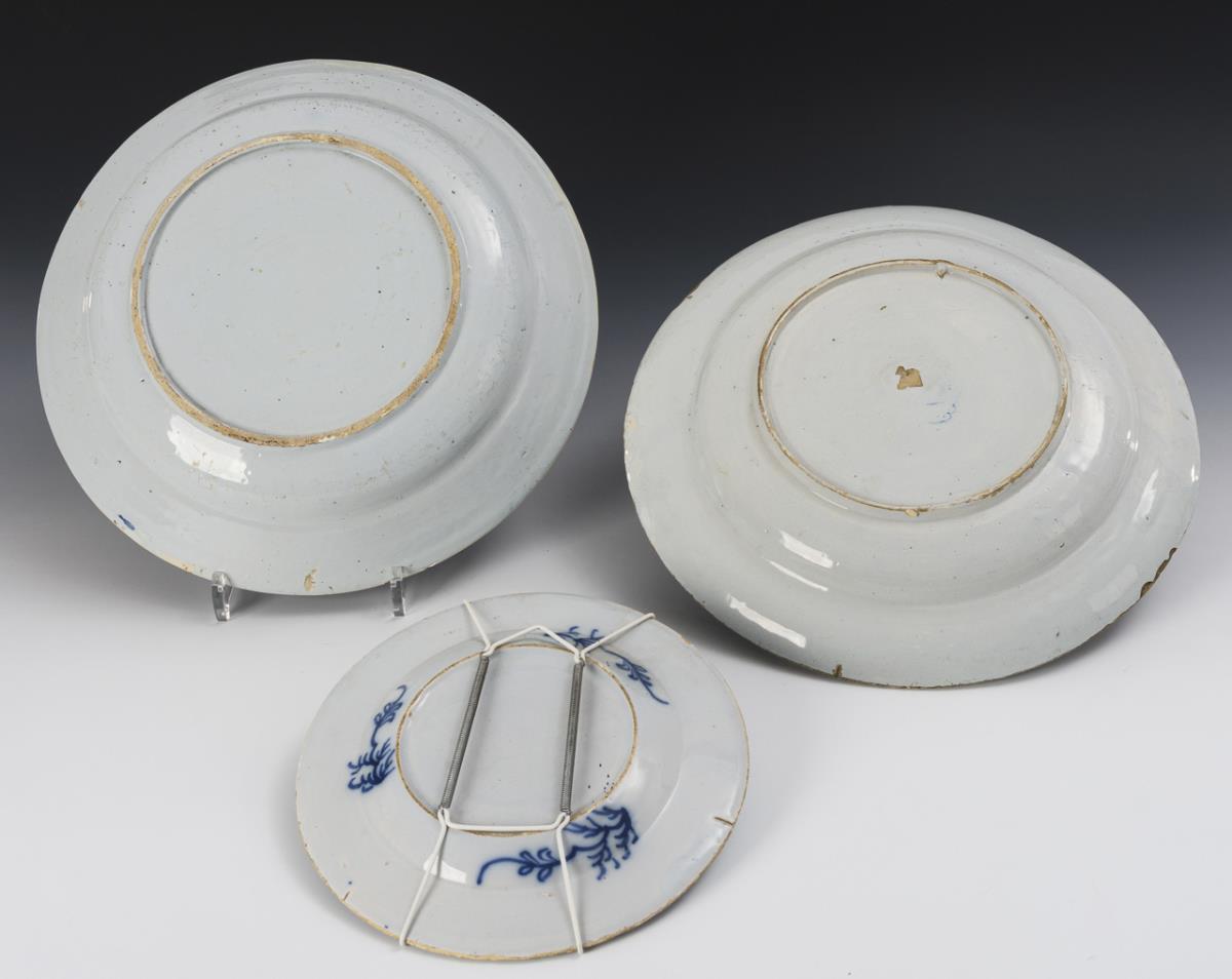 3 Fayence-Teller mit floraler Blaumalerei im asiatisierenden Stil.