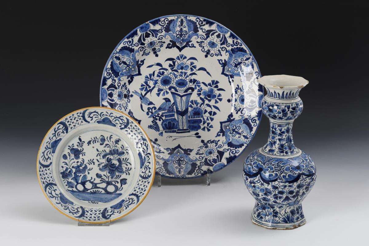 Sie befinden sich hier:   Startseite Kategorien Keramik 3 Delfter Fayencen: 2 Wandteller und Vase