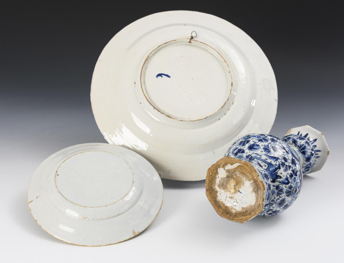 3 Delfter Fayencen: 2 Wandteller und Vase.