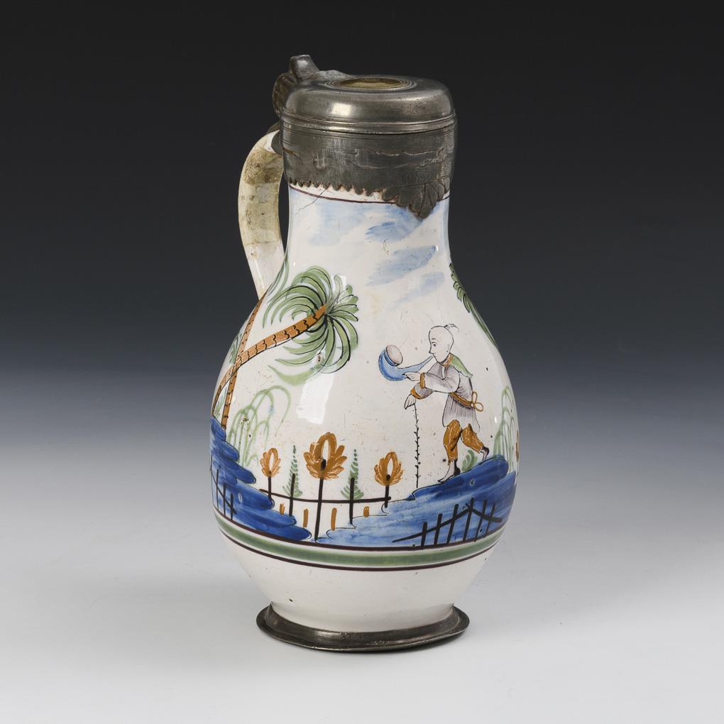 Barocker Fayence-Birnkrug mit Chinoiserie. Flörsheim.
