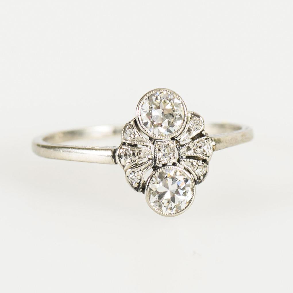 Art-déco-Ring mit Altschliff-Brillanten und Diamanten.