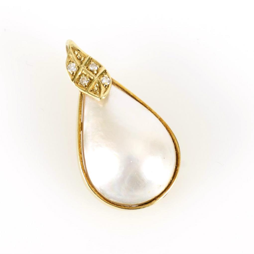 Zargengefasste Mabézuchtschalenperle und 4 eingelassene Kleinstdiamanten, an Klippöse.