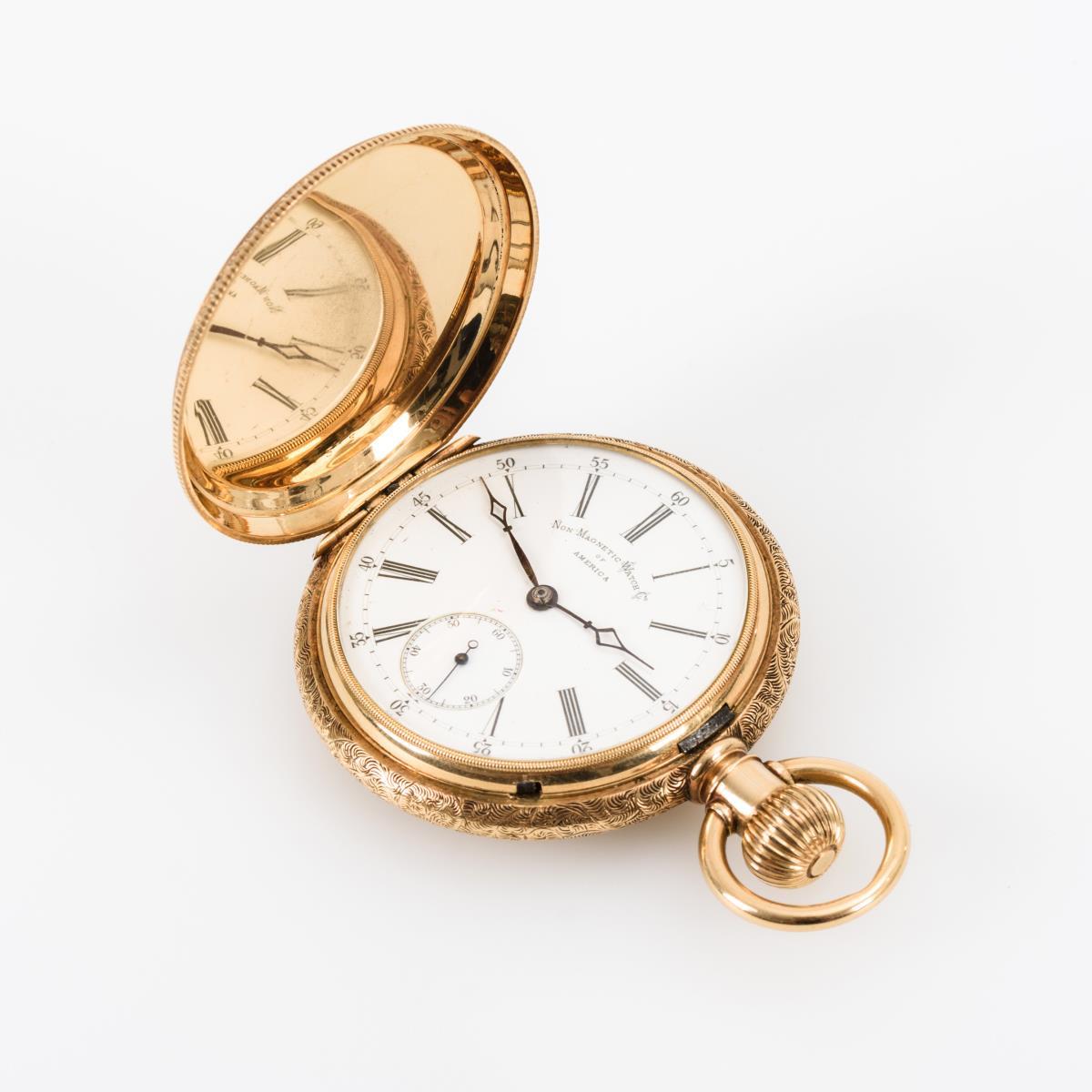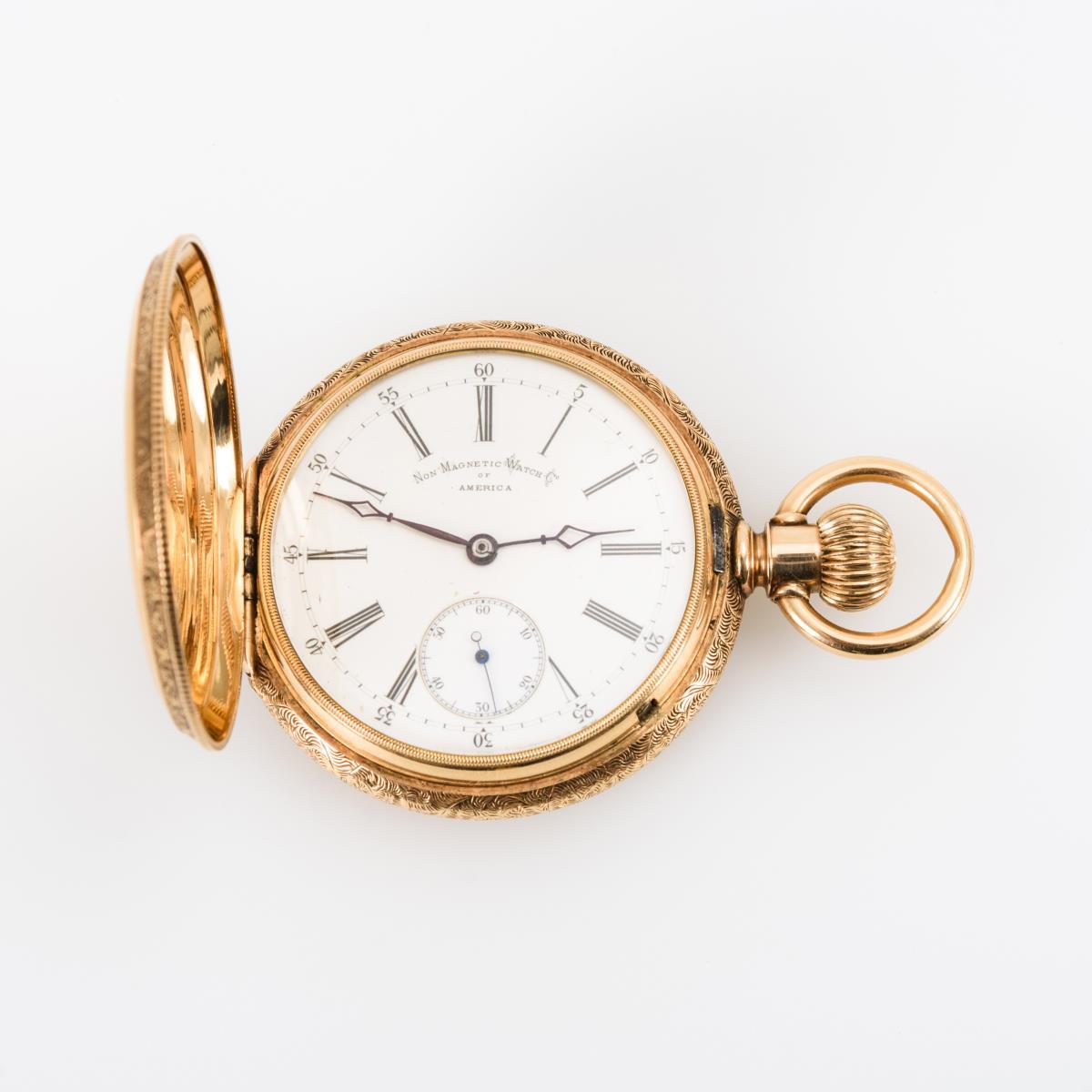 Goldene Sprungdeckeluhr. Non-Magnetic Watch Co. of America.