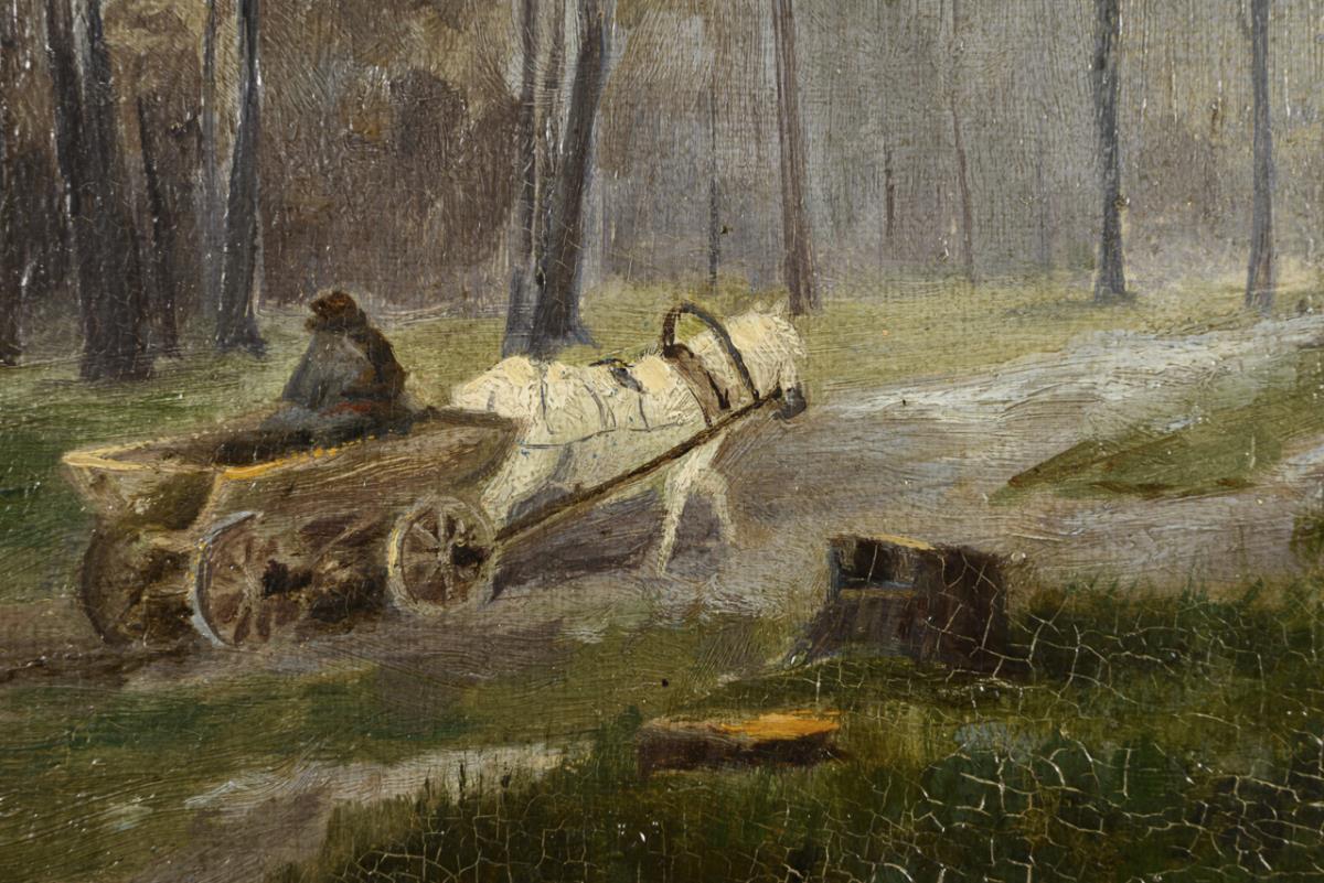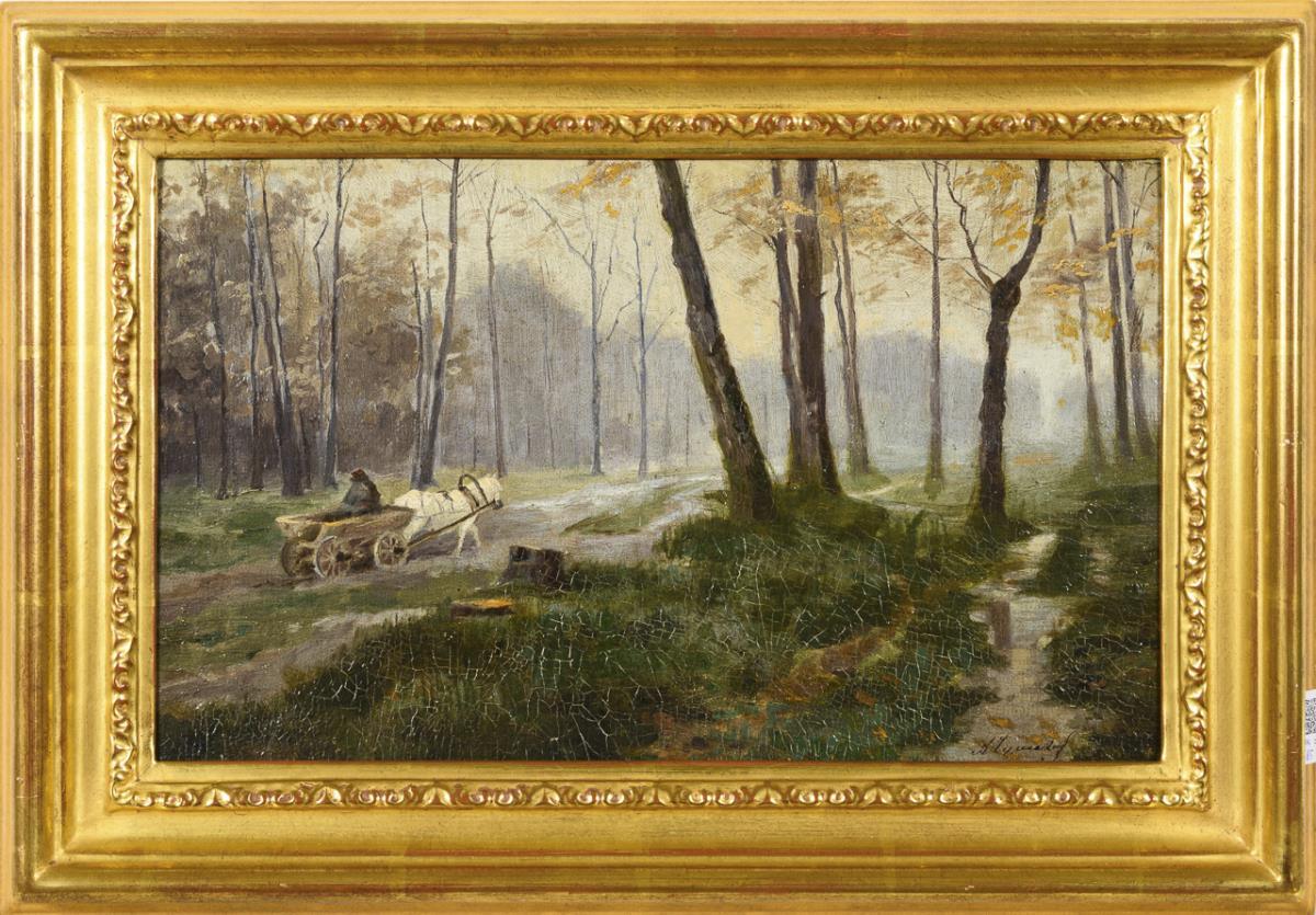 Waldlandschaft mit Fuhrwerk