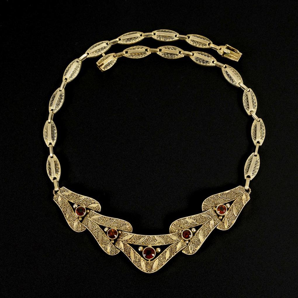 Fahrnercollier mit Imitationen, um 1935. Theodor Fahrner, Pforzheim.
