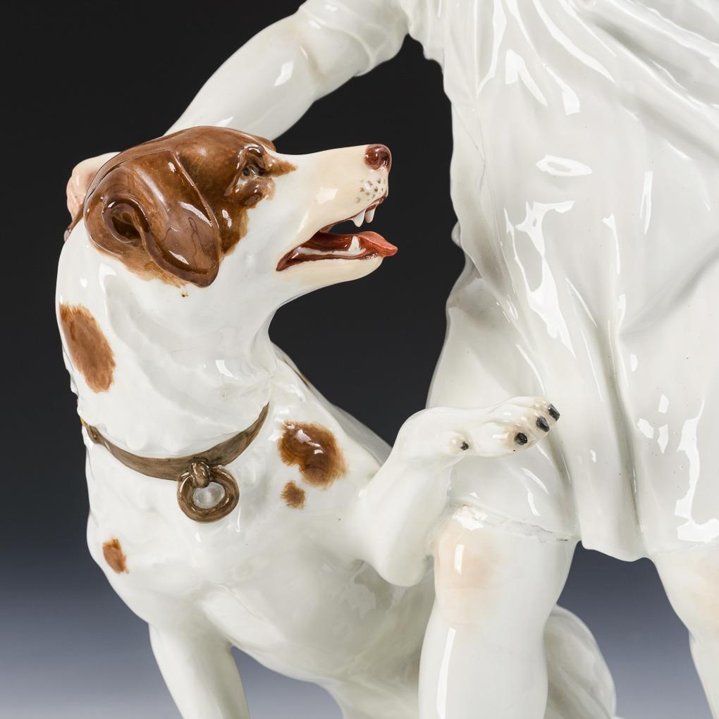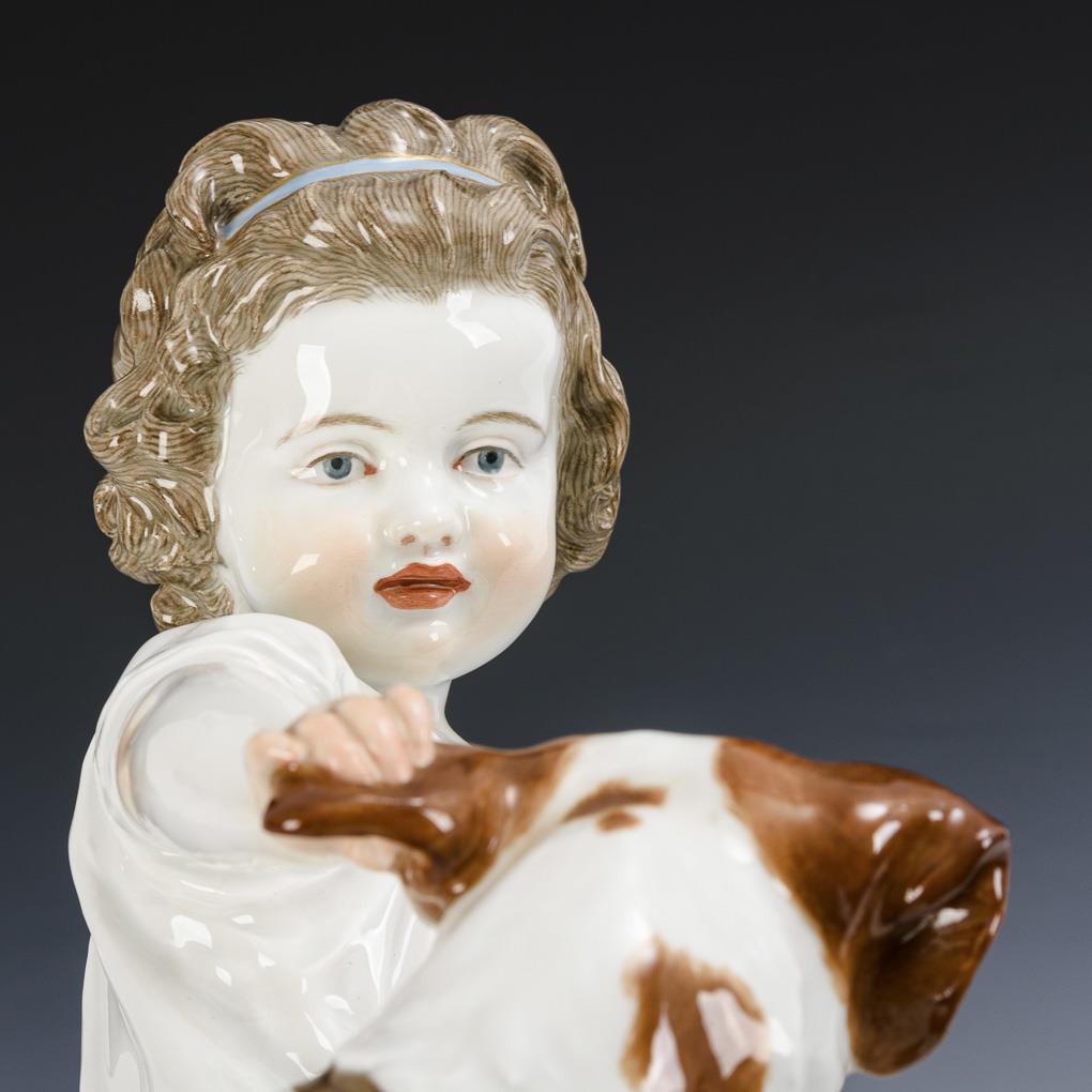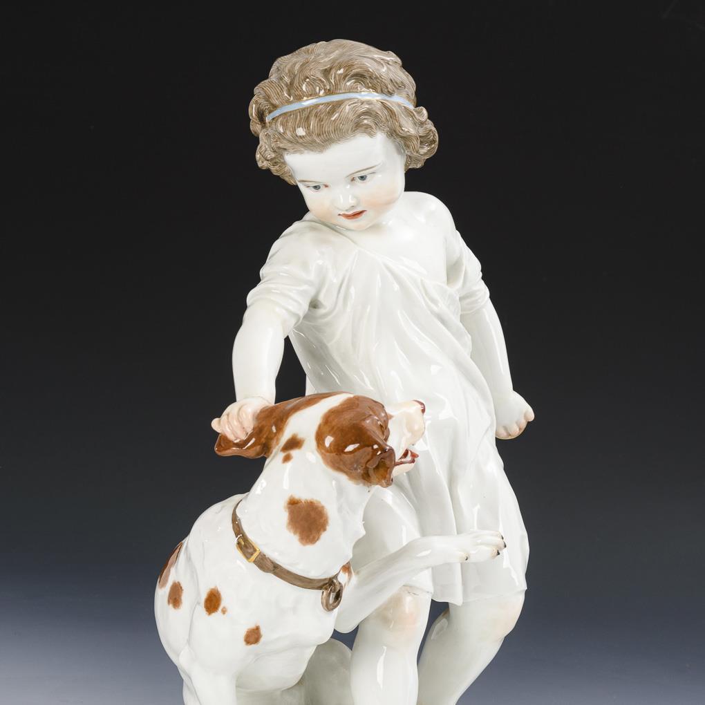 Seltene Plastik: Knabe mit Hund. Meissen.