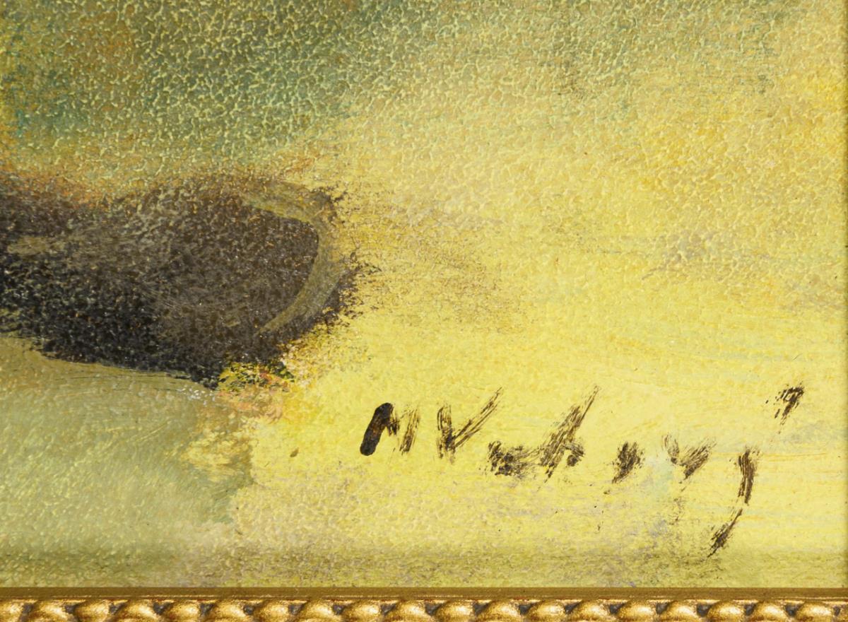 Öl/Malkarton. Rechts unten undeutlich signiert.