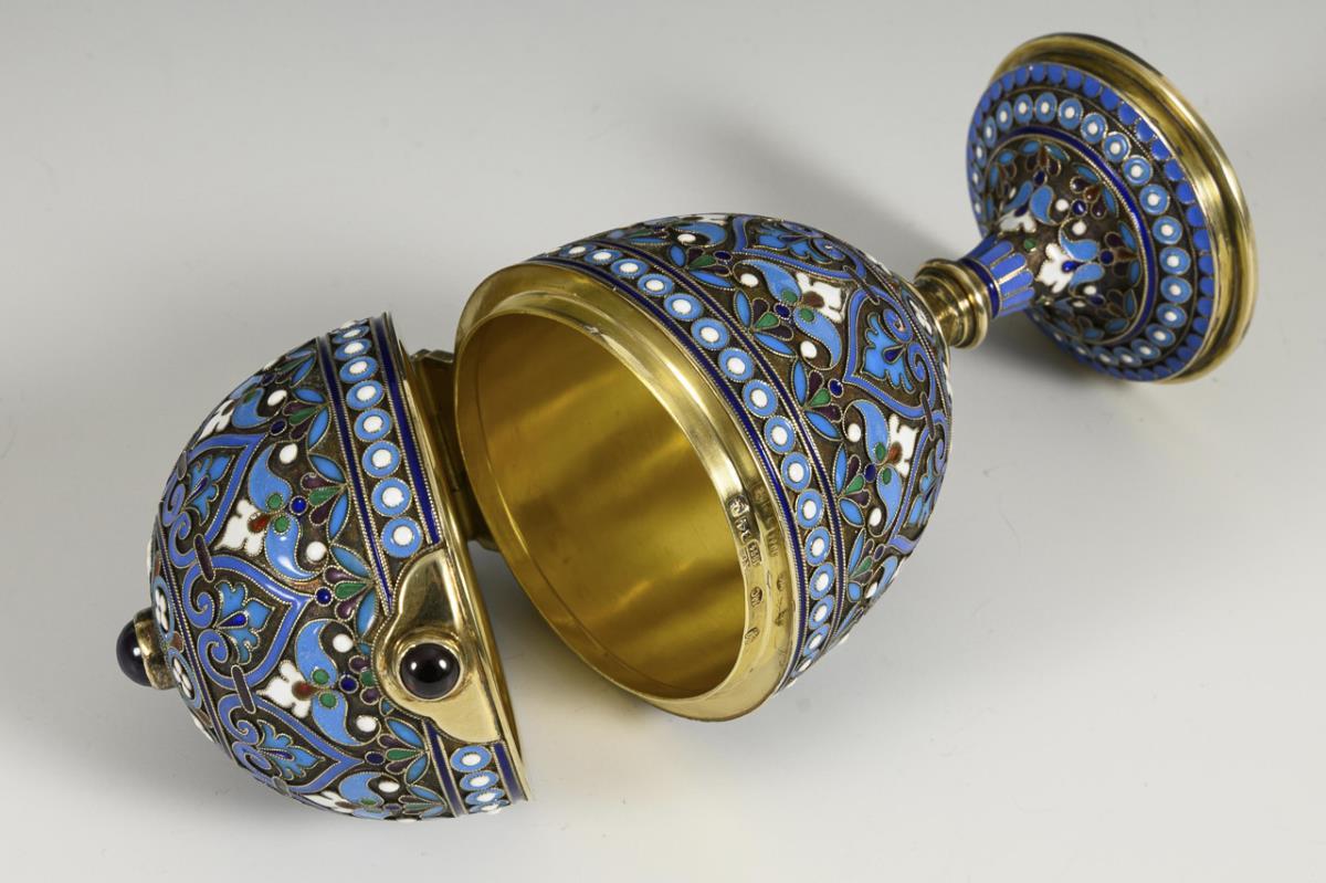 Email, Silber, innen vergoldet. H 13 cm. 189 g.