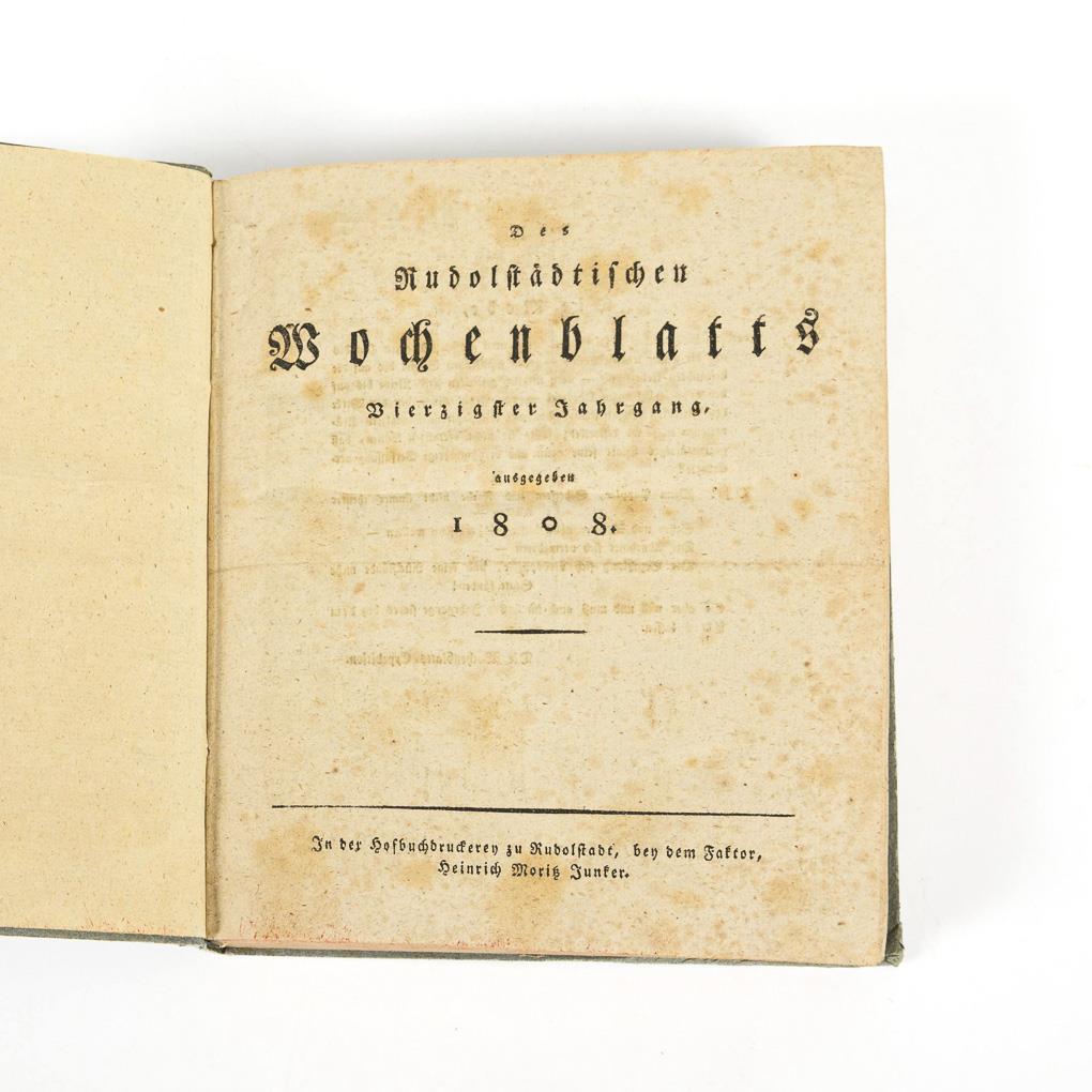 Sie befinden sich hier: Startseite Kategorien Bücher "Des Rudolstädtischen Wochenblatts Vierzigster Jahrgang (1808) und Ein und Vierzigster Jahrgang (1809)"