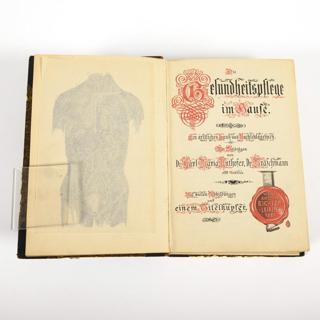1 Titelkupfer, viele Abbildungen im Text. Dazu 12 Tafeln mit Ansichten der Fabrik und des Rudolsbades von F. Ad. Richter & Cie Rudolstadt, Nürnberg und Wien, Hersteller der Anker-Hausmittel und der Anker-Steinbaukasten. 628 Seiten. Brauner Halbledereinband mit goldgeprägtem Rücken. Die letzten 4 Seiten lose beigelegt, einige Alters-/Gebrauchsspuren am Einband.