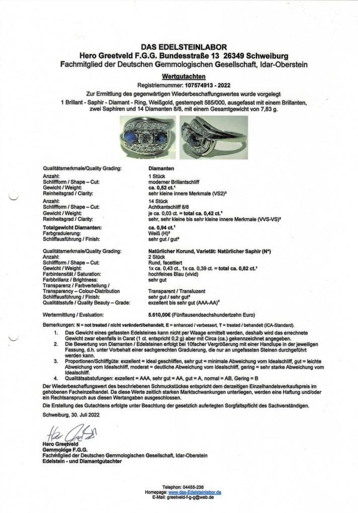 Edler Ring mit Saphiren, Brillant und Diamanten.
