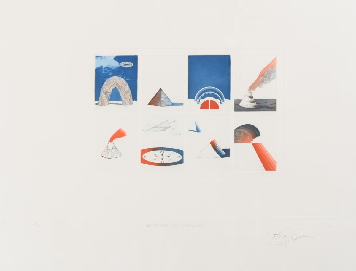 8 Farbradierungen auf einem Blatt. Bleistiftsignatur. Exemplar: 38/100, Prägestempel: "Retigraphic Society".