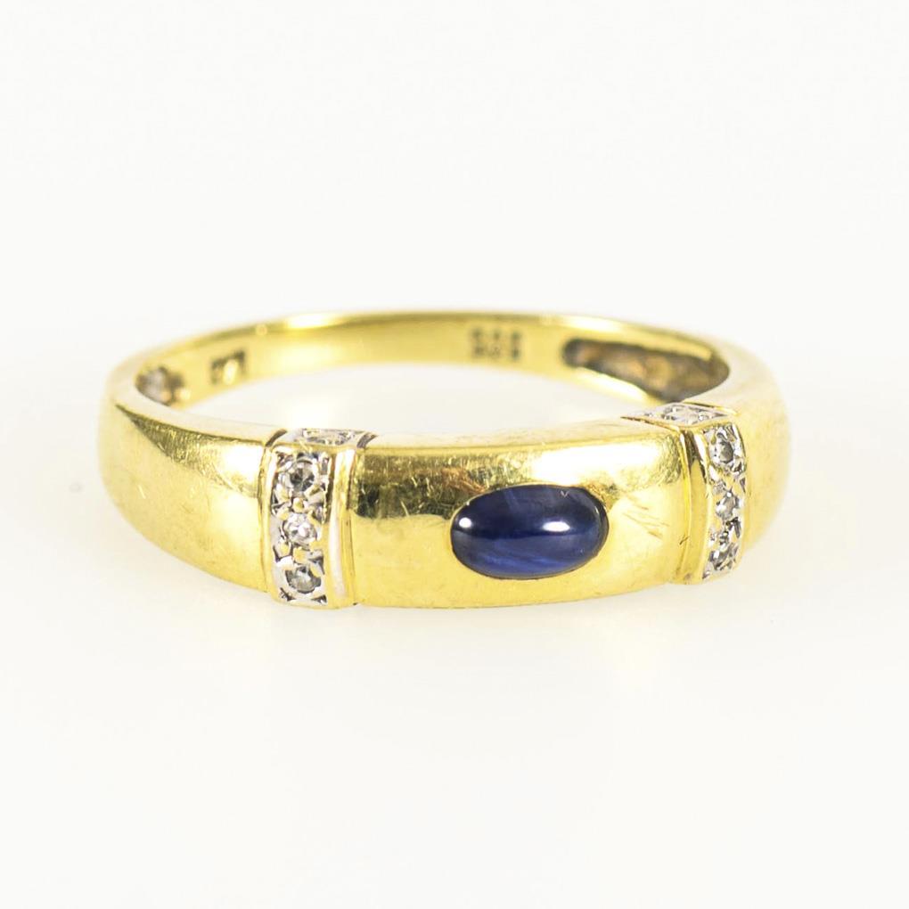 Mittlerer Bandring mit Saphircabochon und 6 eingelassenen Kleinstdiamanten.