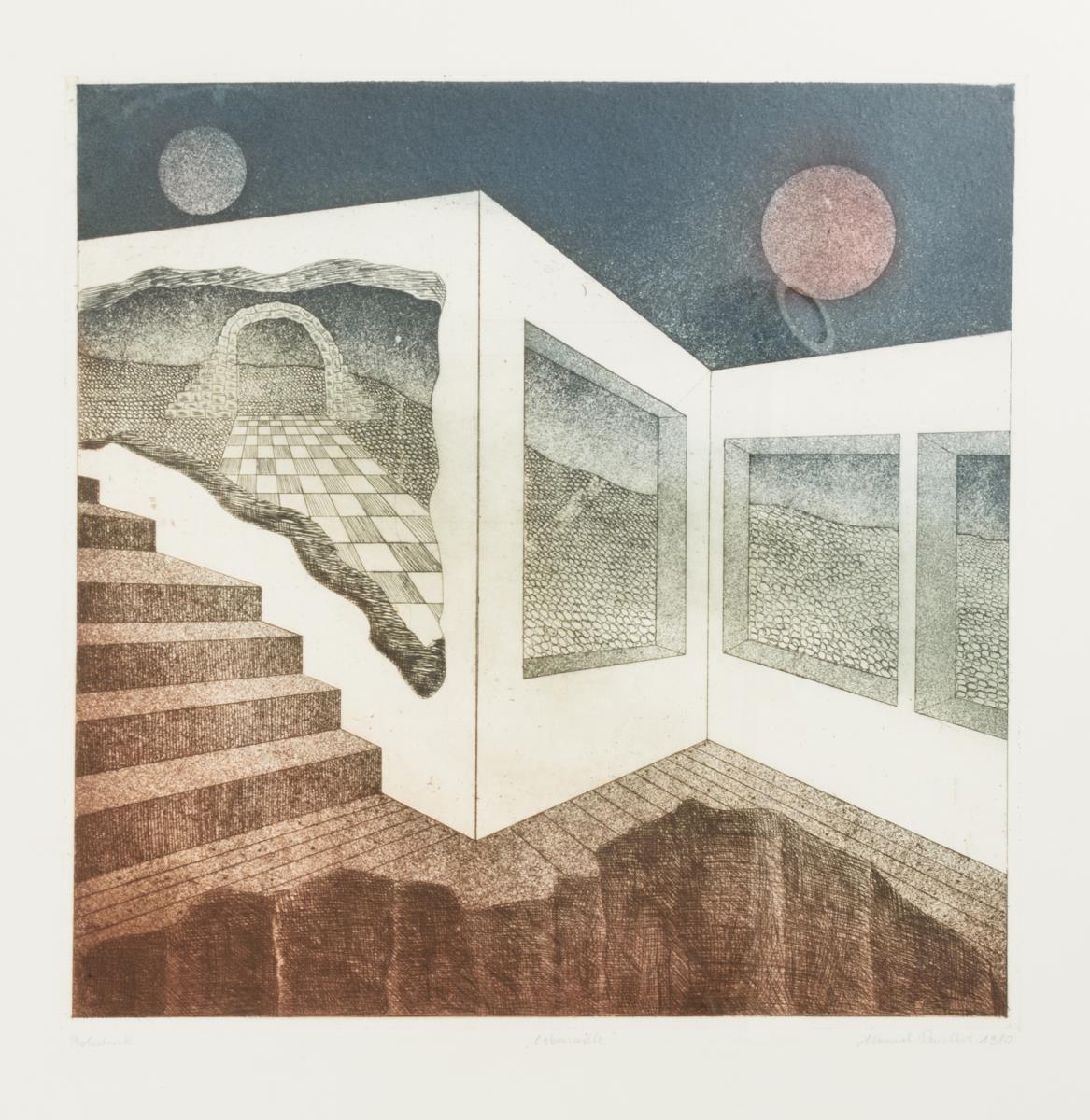 2 Farbradierungen. Bleistiftsignatur. 1980. Probedruck.