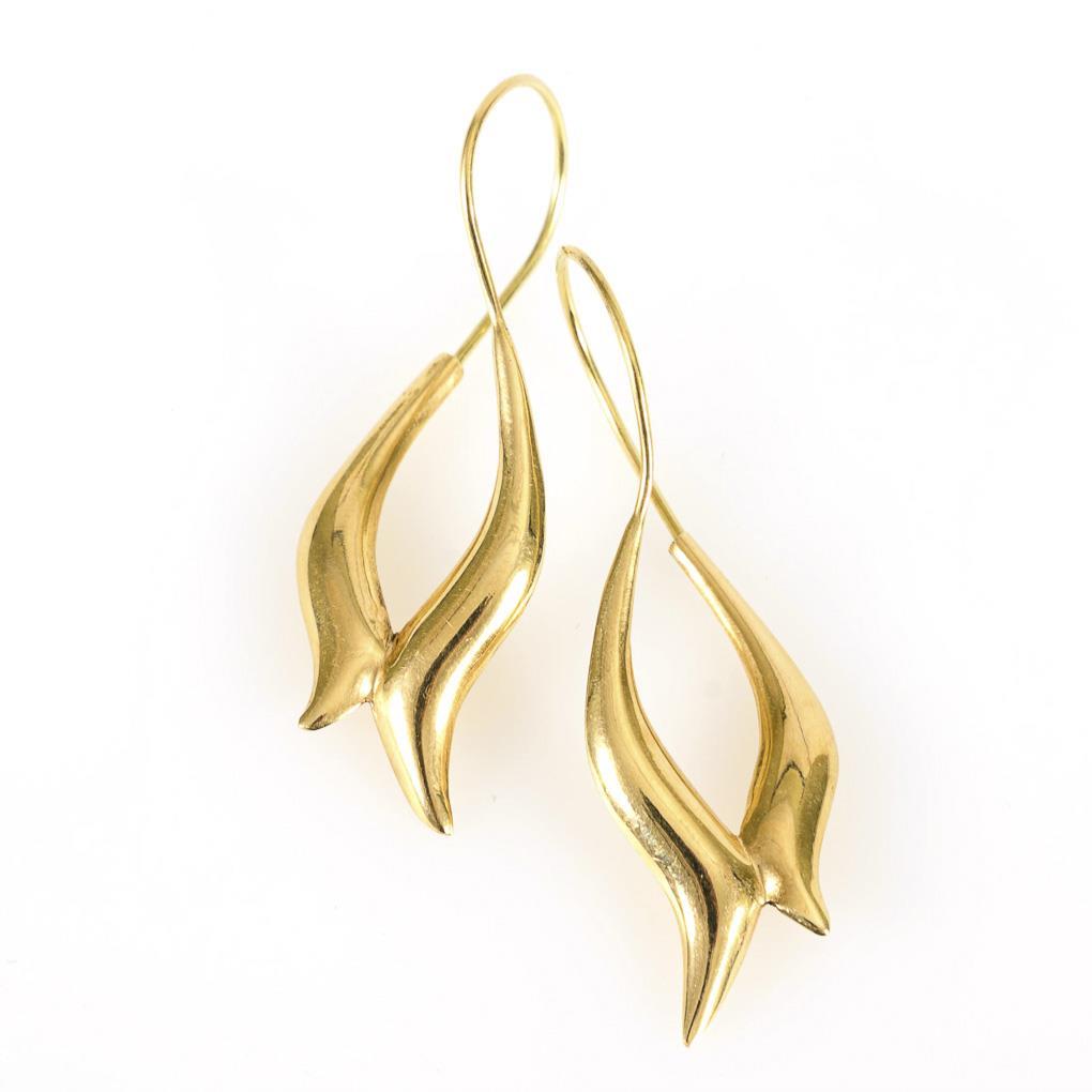 In Hohlform reliefierter Ohrhänger mit großem Bügelsteg.