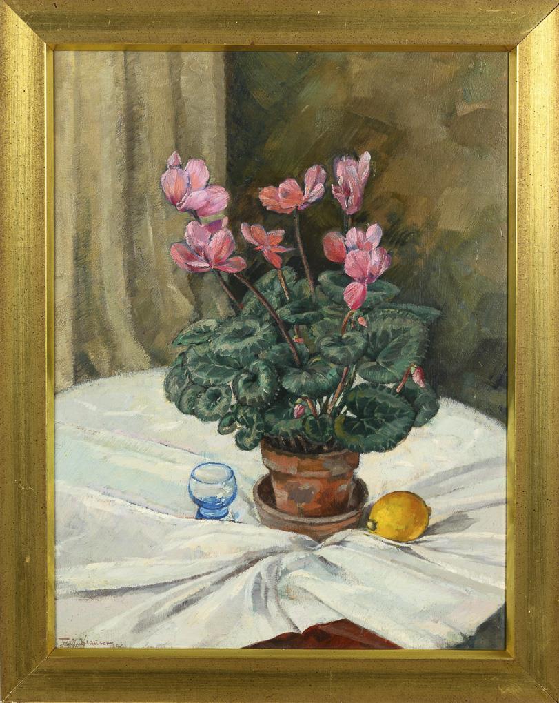 58 x 45 cm. Gerahmt : 66 x 53 cm (Goldleistenrahmen).