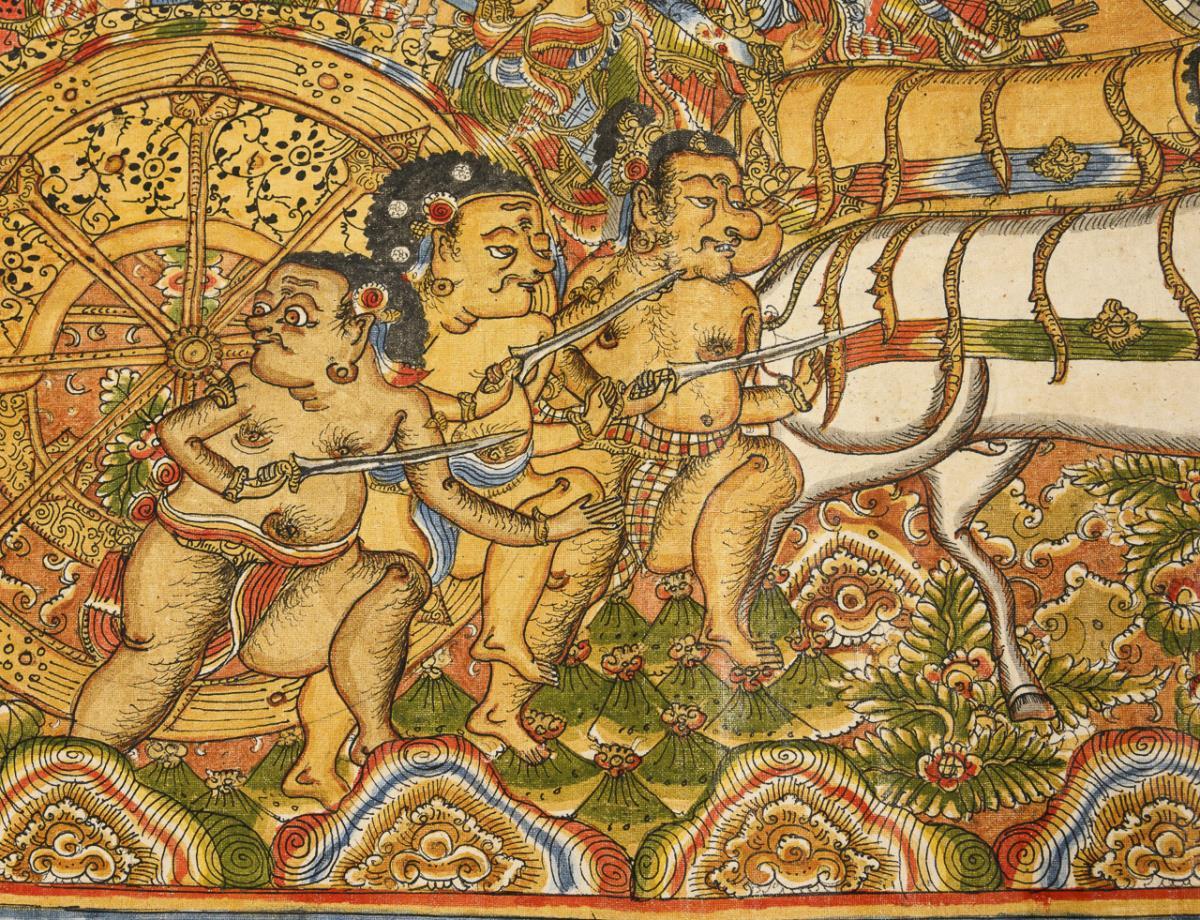 Mythologische Szene, auf Stoff gemalt.