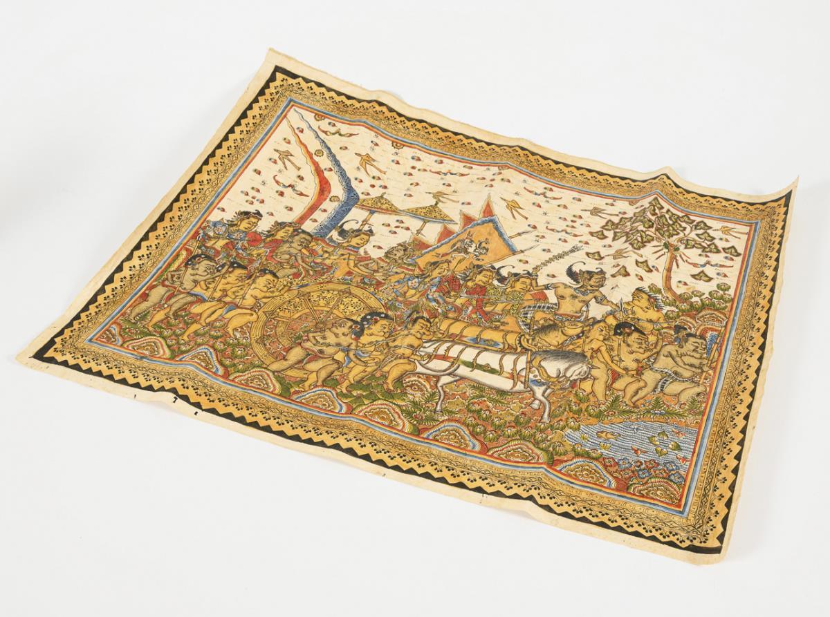 Farbige Malerei auf Baumwolle(?). 61 x 82 cm.