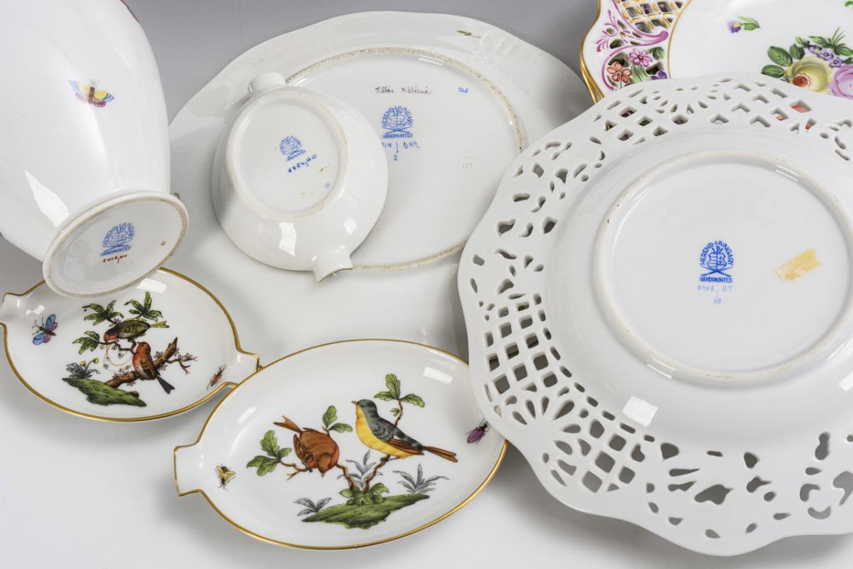 Vase, 1+5 Teller und 3 Ascher. Herend.
