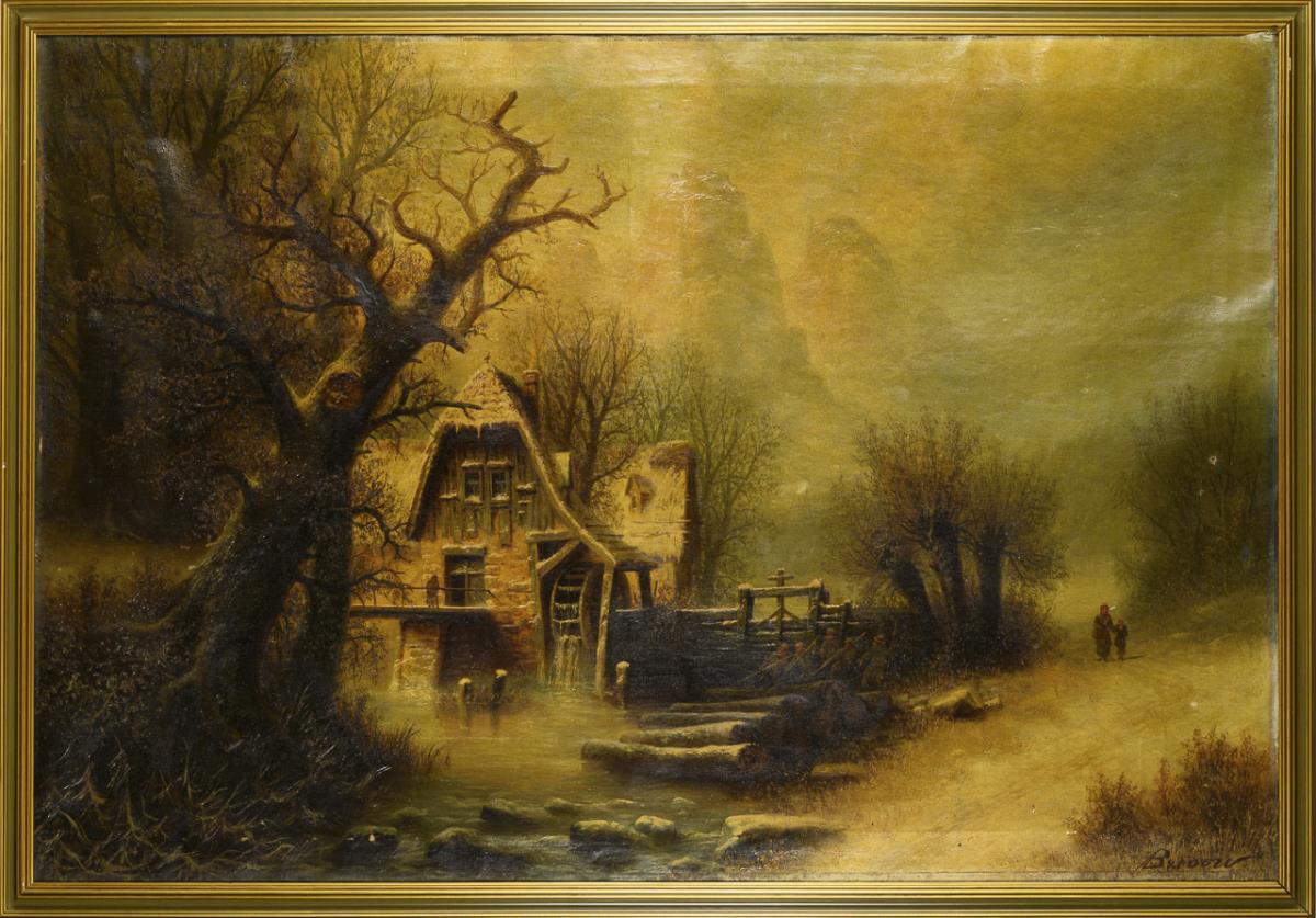 Winterlandschaft mit Mühle und Staffage