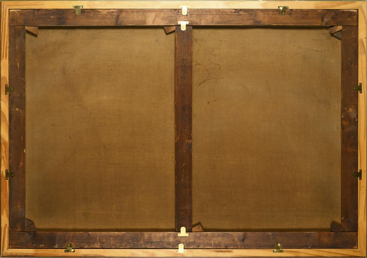 101,5 x 142 cm. Gerahmt : 105,5 x 150 cm (teils goldener Rahmen).