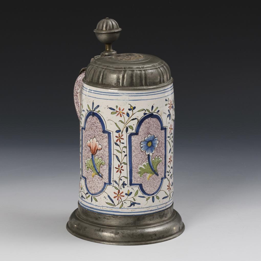 Sie befinden sich hier: Startseite Kategorien Keramik Barocker Thüringer Fayence-Walzenkrug mit Pilasterdekor und Blumenreserven