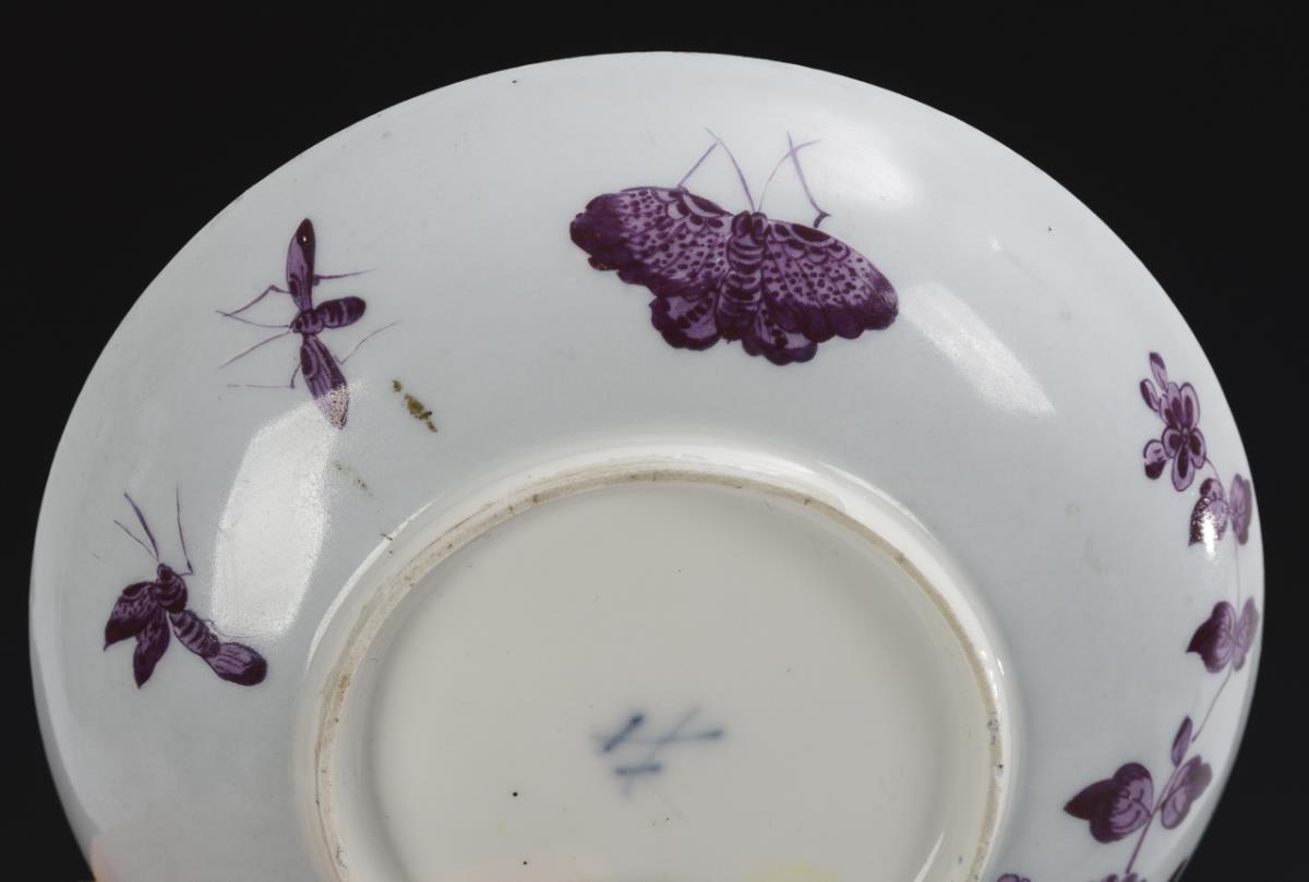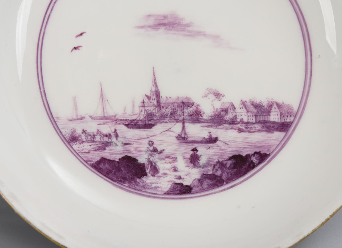 Purpurfarben bemalt, goldstaffiert. Ø 13,5 cm.