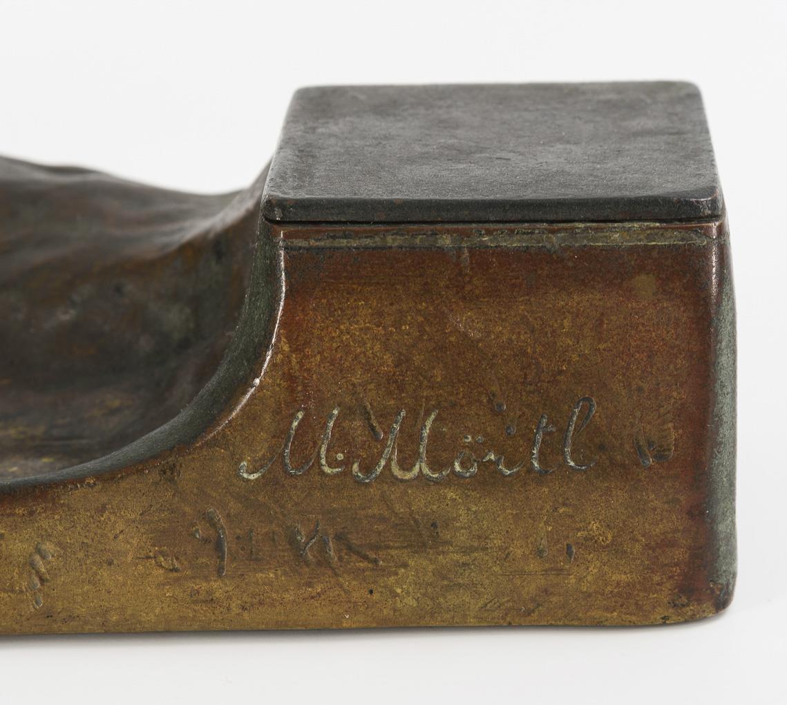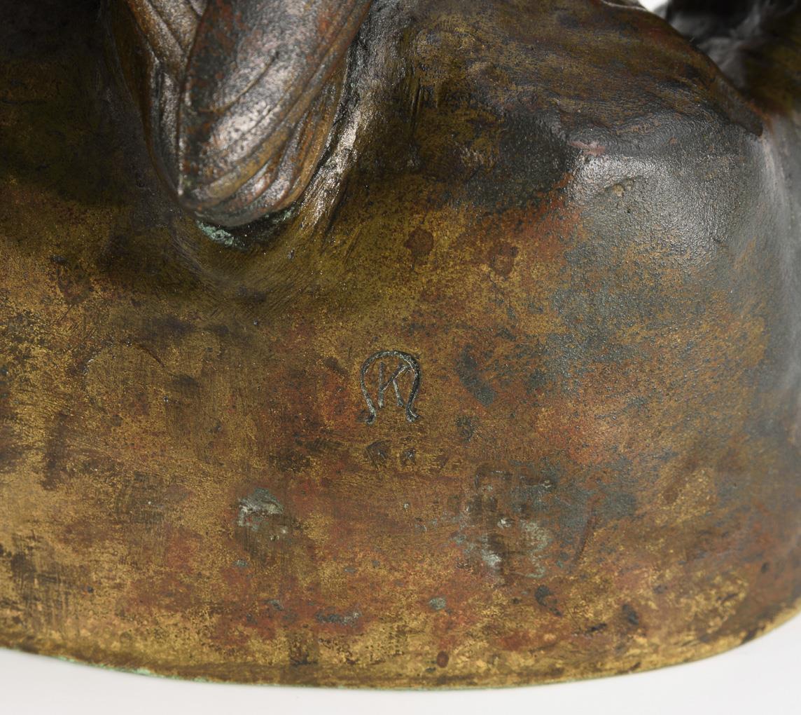 Bronze patiniert. Bezeichnet, Gießermarke K im Hufeisen. 20 x 43 x 22 cm. 5,8 kg.