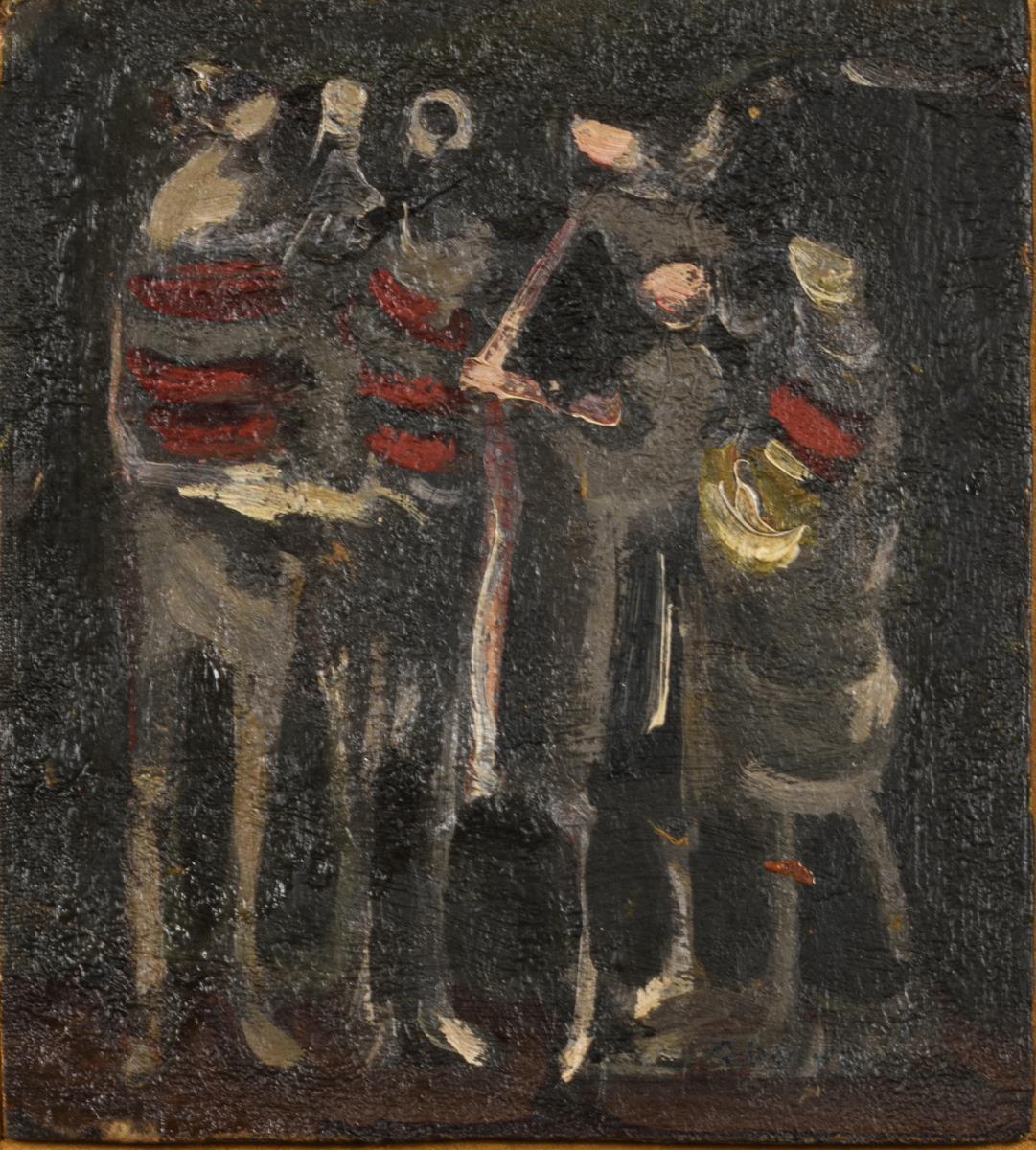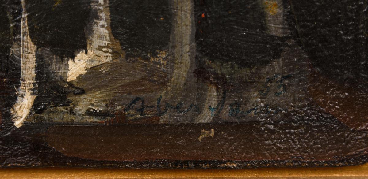 Öl/Leinwand/Karton. Rechts unten signiert, verso undeutlicher französischer Schriftzug. Datiert: (19)55.