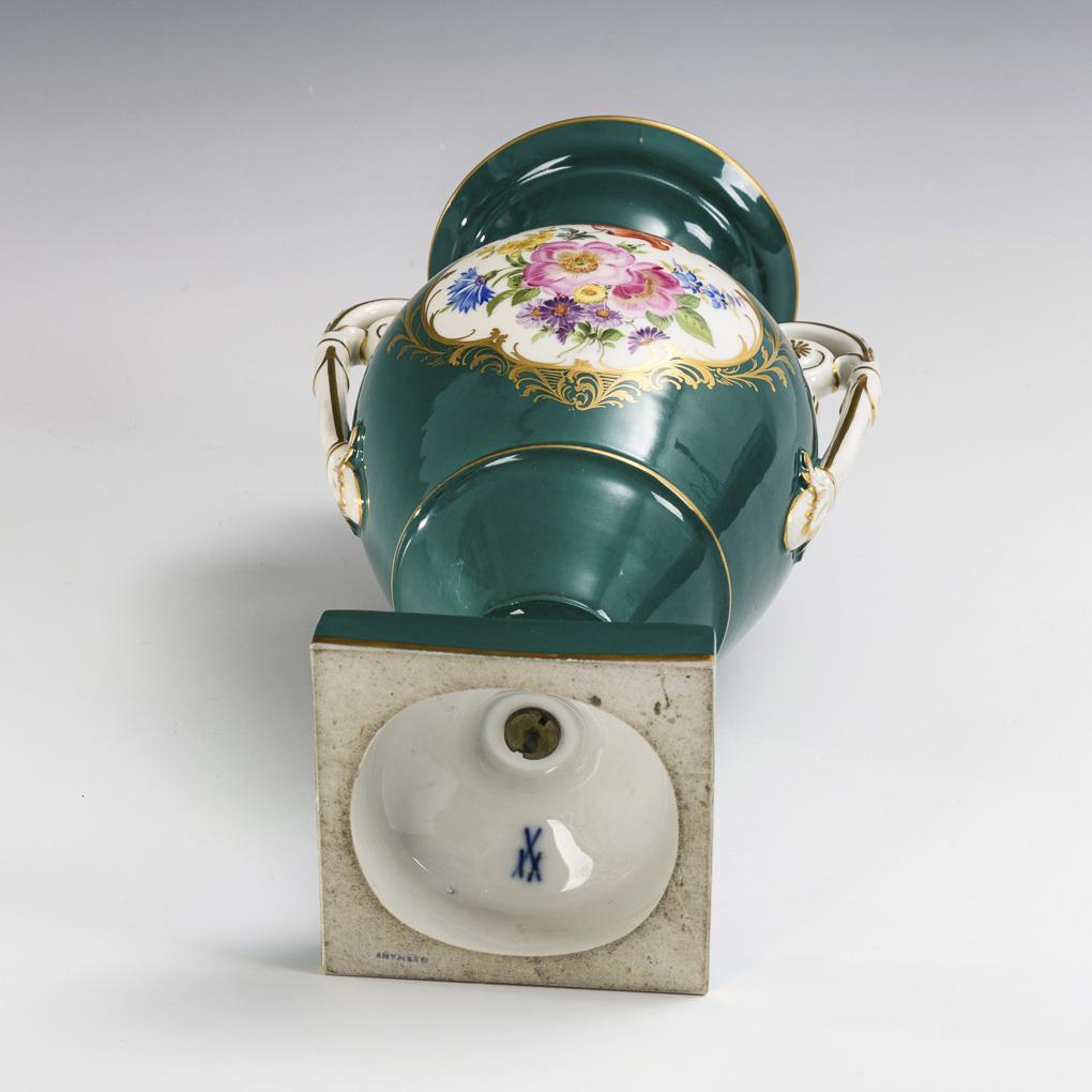 Amphorenvase mit grünem Fond. Meissen.